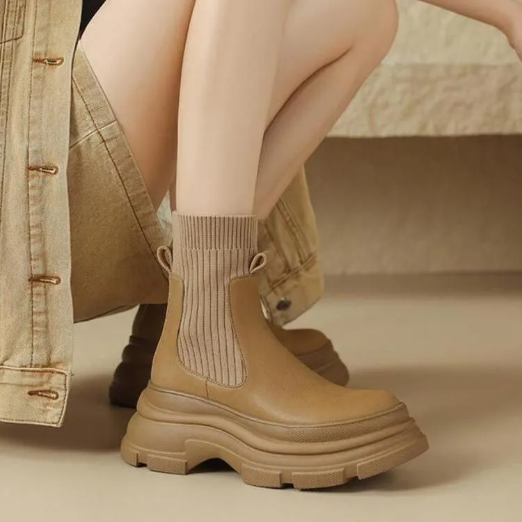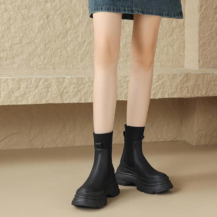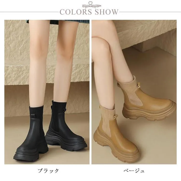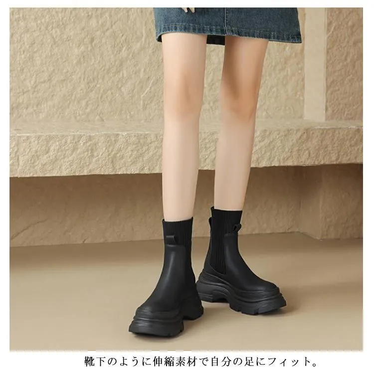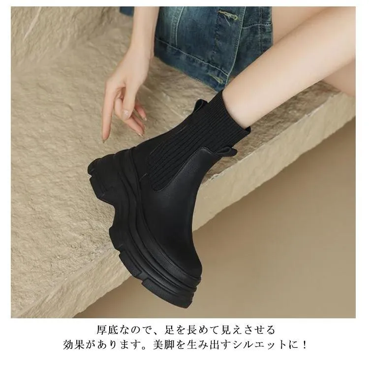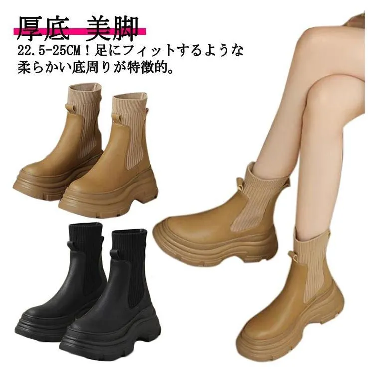 ソックスブーツ レディース アンクルブーツ ショートブーツ ミドル丈 春 秋 冬 PUレザー ブーツ 厚底 靴下ブーツ 美脚 厚底ブーツ 疲れない 安定感 歩きやすい シューズ ラウンドトゥ レディー#amyz2459