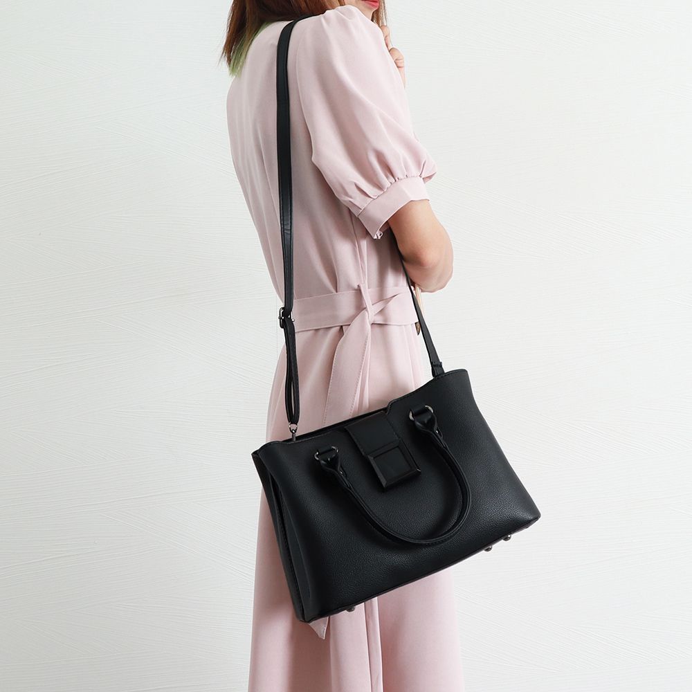 高品質なPUレザーを使用し、上品な光沢感と風合いを演出する3wayトートバッグ