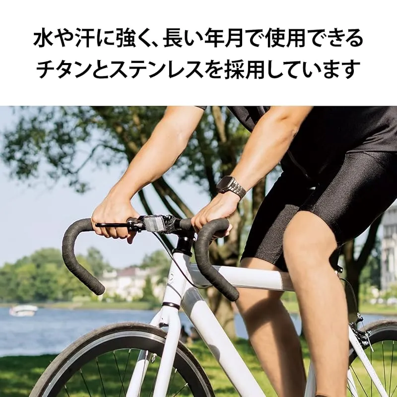 【商品概要】 Apple Watch本体に合わせた素材とデザインで、違和感のない一体感があるApple Watch用チタンバンドです。 ※45/44/42mmサイズのApple Watchにも対応します。 鋼鉄以上の強度と貴金属に匹敵する耐食性を持ちながら、鋼鉄の約55%の質量と言われているチタン素材をバンド本体のコマ部分に採用しました。 3連タイプのコマのようですが、1つの塊(1連)になっているオリジナリティーあるデザインのバンドです 普段使いはもちろん、結婚式やパーティーなどのフォーマルシーンまで幅広く使えるエレガントなバンドです。