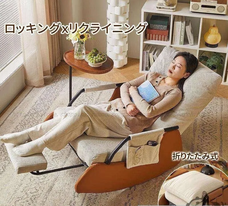 大好評☆ロッキングチェア クッション シングルソファー 大人用 快適 便利 おしゃれ 折り畳み式 ソファ 一人 椅子 肘掛け 揺り椅子 折りたたみ ロッキング 北欧