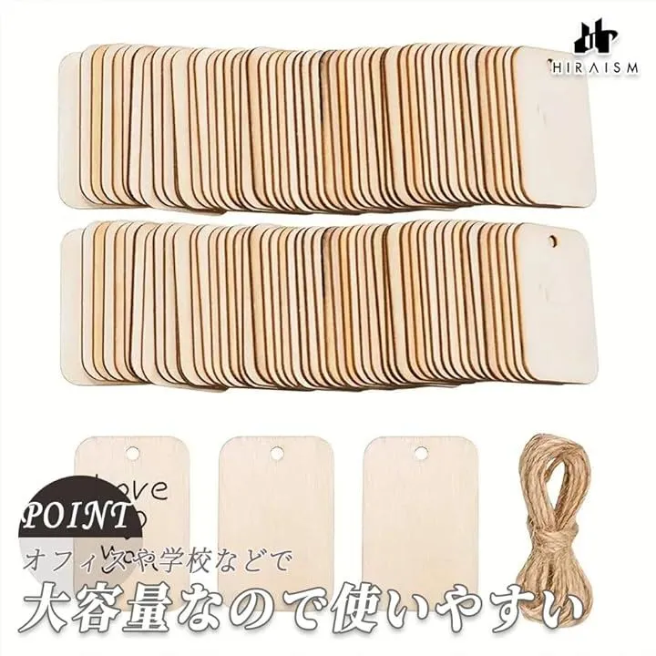 麻ひも付きでシンプルでナチュラルなデザインが特徴で、木製の素材感が温かみのある雰囲気を演出し、さまざまな用途に使いやすいです。