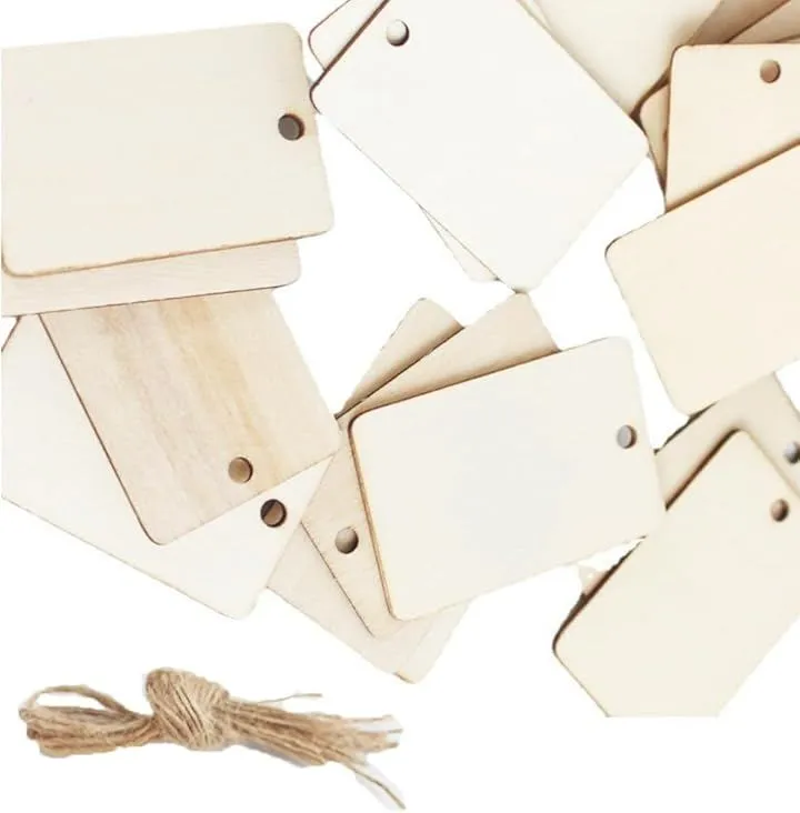 「商品内容」木製ネームタグ <サイズ>約5.2cmx3.3cm(1個あたり) <素材>本体:木材 紐:麻 <セット数>10個or50個or100個 <付属>麻紐