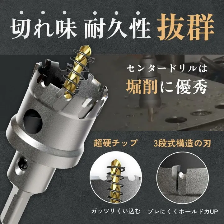 【使用用途】電動ドリル、ボール盤に使用可能。センタードリル・六角レンチ付き(センタードリルはシンニング加工によりポンチングが不要です。)