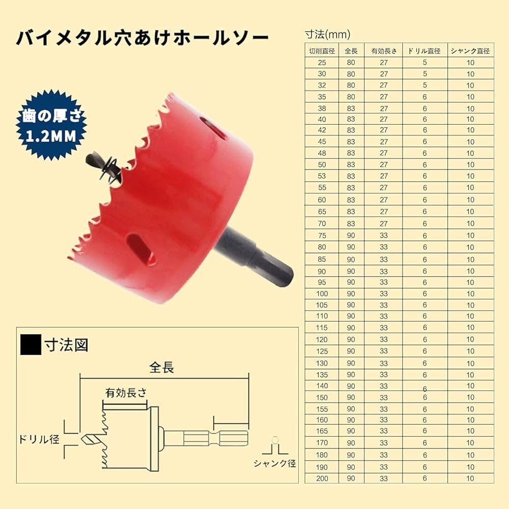 ●トップ写真と実物写真が微妙に違う事がありますので、購入の際は必ず実物写真をご確認の上ご購入お願いします。 分からない事がありましたらコメント下さい。 [サイズ】LAIWEIホールソー、長さ83mm、切削直径70mmホールソー、刃厚1.2mm、シャフト直径10mm、センタードリル直径6mm。 [材質】バイメタルホールソー丸鋸刃は、切れ味、耐食性、耐摩耗性、耐久性に優れた高品質のコバルト含有量M42高速度鋼製。 センタードリルは被削性と靭性に優れた高級鋼を使用。 [特長1】 ライウェイのプレミアムホールカッターは、プレミアムハイス(M42)と強靭なスプリング鋼を電子ビーム溶接し、高い切削性能を実現。 この結合間隔が穴あけ時の振動を低減し、高精度加工を可能にします。特長2】 切屑を押し出すバネ付ハイスセンタードリルを採用し、切屑排出時間を短縮。