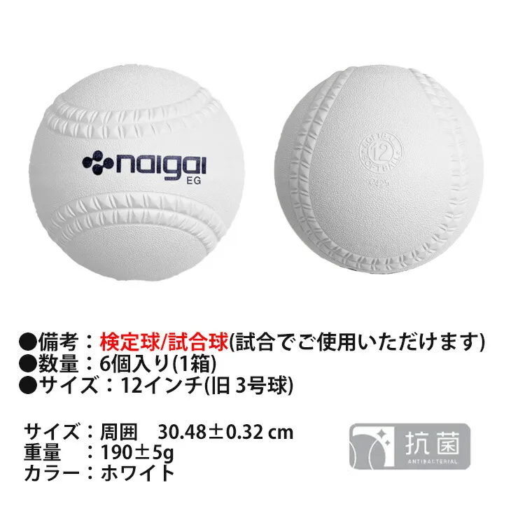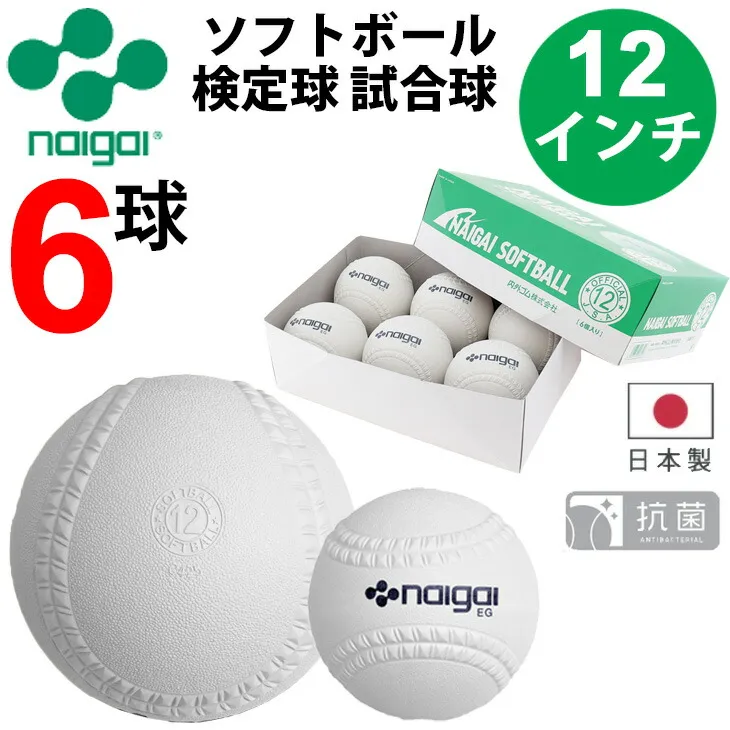 ナイガイ NAIGAI ソフトボール 12インチ (旧3号球) 6球(1箱) 検定球 一般・大人用 中学生以上 ゴムソフトボール 公認球 試合球 日本製 内外 新意匠 検定12インチ 中学ソフト 高校ソフト 男女ソフト/nai-Kounin12-6ko