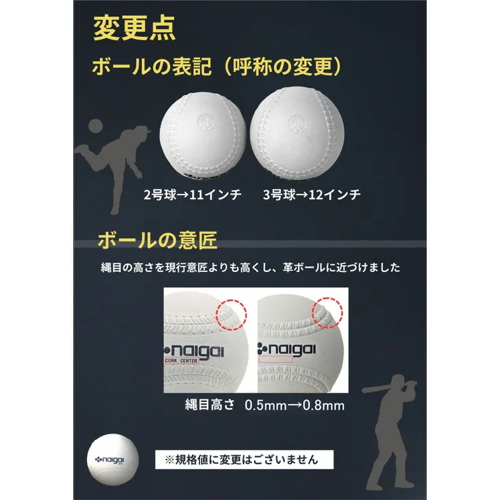 【大会使用時期】について 令和8年(2026年)4月以降の大会より予定(JSA発表) ナイガイソフトボールは国内シェア約50%と多くのチーム、プレーヤー様に、 ご愛用頂いており、その品質の高さは定評となっております。