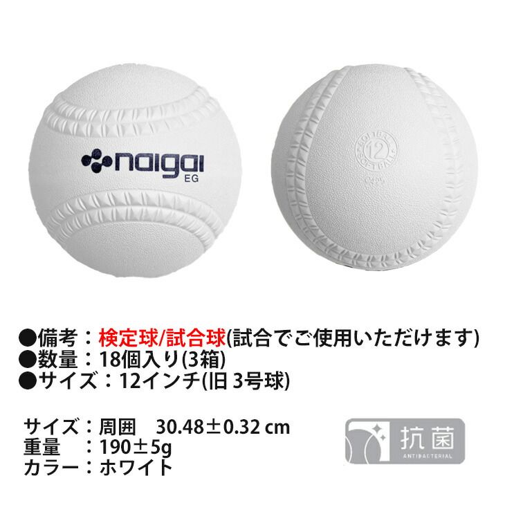 ナイガイ NAIGAI ソフトボール 12インチ (旧3号球) 18球(3箱) 検定球 一般・大人用 中学生以上 ゴムソフトボール 公認球 試合球 日本製 内外 新意匠 検定12インチ 中学ソフト 高校ソフト 男女ソフト/nai-Kounin12-18ko