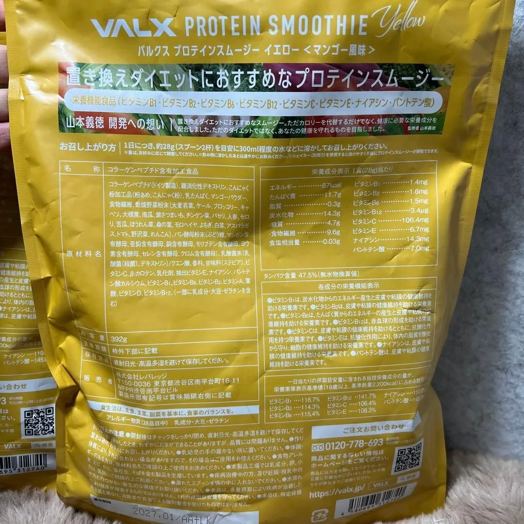 VALX バルクス プロテインスムージー イエローマンゴー風味392g x2袋