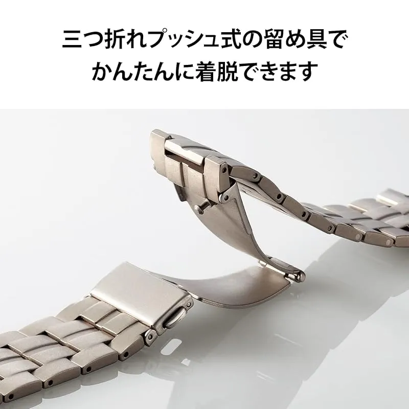 [エレコム] アップルウォッチ Watch バンド 【49mm 45mm 44mm 42mm / Ultra 3/2Ultra, SE3/2/SE, 11 10 9 8 7 6 5 4 3 2 1 対応】 チタン ステンレス 金属 三つ折れプッシュ式 シルバー