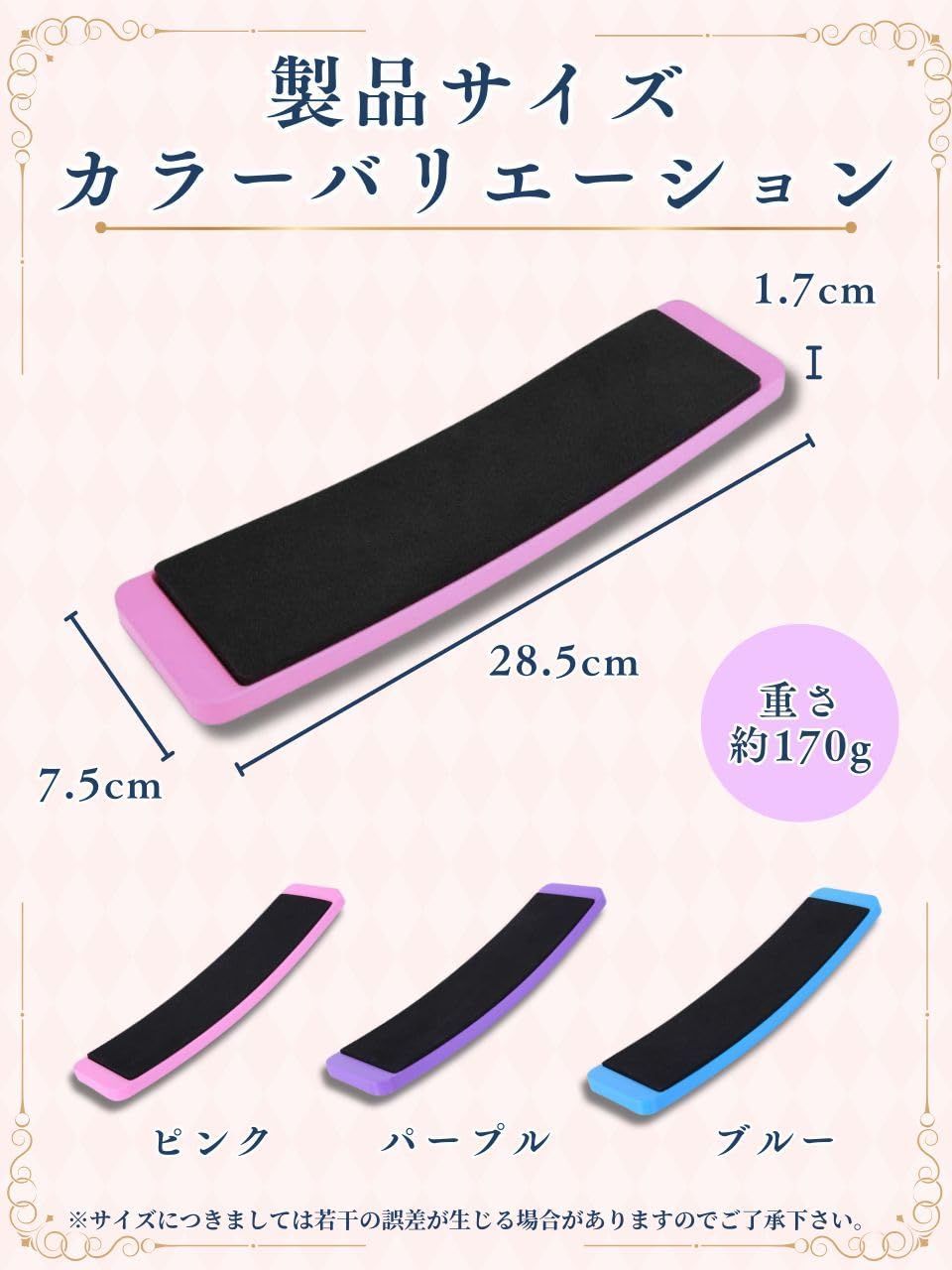 【製品仕様】〇カラー:ピンク、パープル、ブルー。〇サイズ:約28.5cm × 7.5cm × 1.7cm。〇重量:約170g。〇素材:高耐久性複合樹脂プラスチック、EVA製滑り止めパッド。〇耐荷重:約120kg。〇対象:バレエダンサー、ダンス初心者、キッズから大人まで幅広く対応。 〇用途:ピルエット、スピン、ターン練習、バランストレーニング、体幹強化など。※ご自宅で使用する際には、床に傷がつく可能性がありますのでご注意ください。※サイズにつきましてはあくまで目安のため若干の誤差が生じる場合がありますのでご了承下さい。※商品写真はできる限り実物と近づけるようにしていますが、お使いのモニター設定、お部屋の照明等により実際の商品と色味が異なる場合があります。※海外製品のため日本製のものと比べて細かいところで雑に見えるものや多少の誤差がある場合があります。恐れ入りますが予めご了承ください。 ブランド RENASYS 色 パープル 材質 プラスチック メーカー RENASYS 他のショップでも販売しておりますので、 お早目の購入をおススメします。 どうぞよろしくお願いいたします。