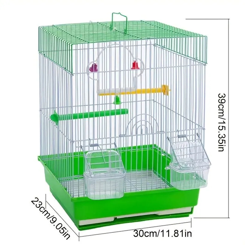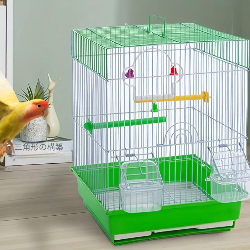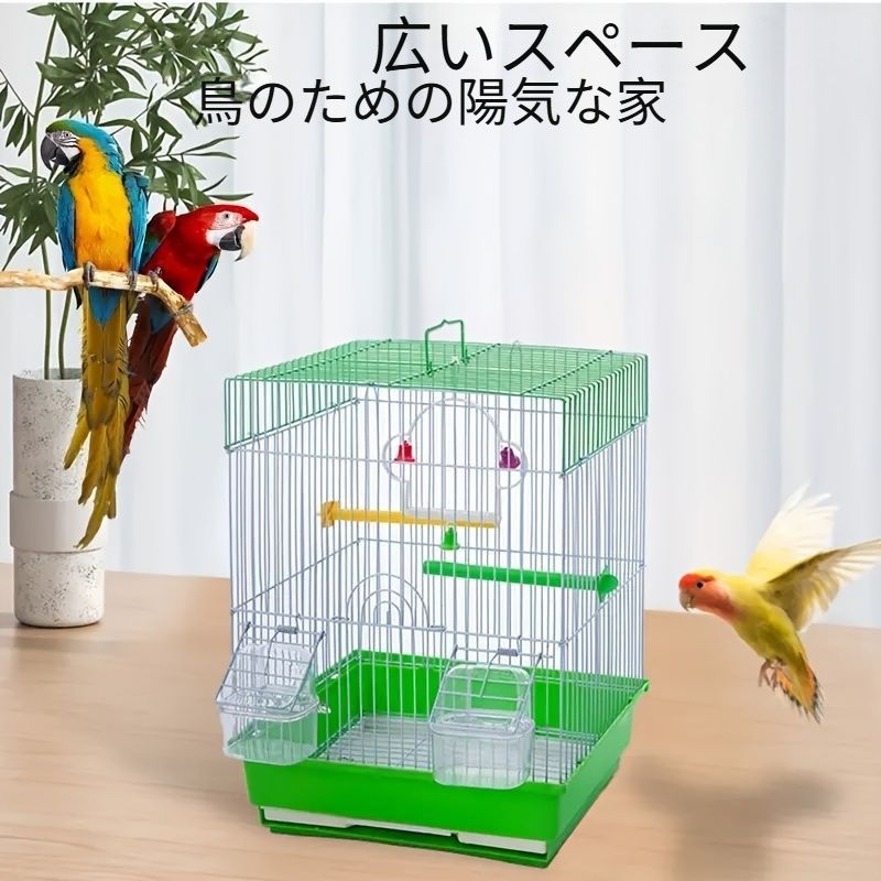 インコ コニュア コカティール マナ ラブバード フィンチ用 大型鳥かご スイング&クライミングラダー付き カラフル メタルハンモックトイ 耐久性 緑色 透明視聴パネル