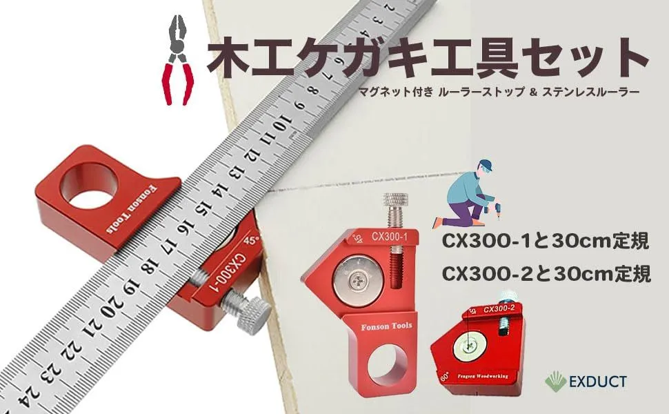 ネジで定規を固定するだけのシンプル操作で使い方も簡単です!柔らかい金属、木やタイルに一定の角度の直線を簡単に描くことができます!CX300-1は45度と90度、CX300-2は45度、60度、90度の角度で直線を引けます!
