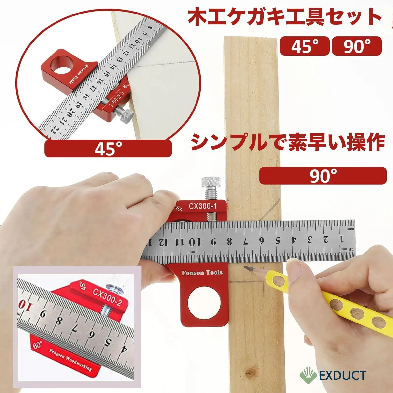 ケガキ 工具 マーキングゲージ 木工 金属 ケガキゲージ スコヤ マグネット付き 45度 90度 位置決め CX300-1 T1137