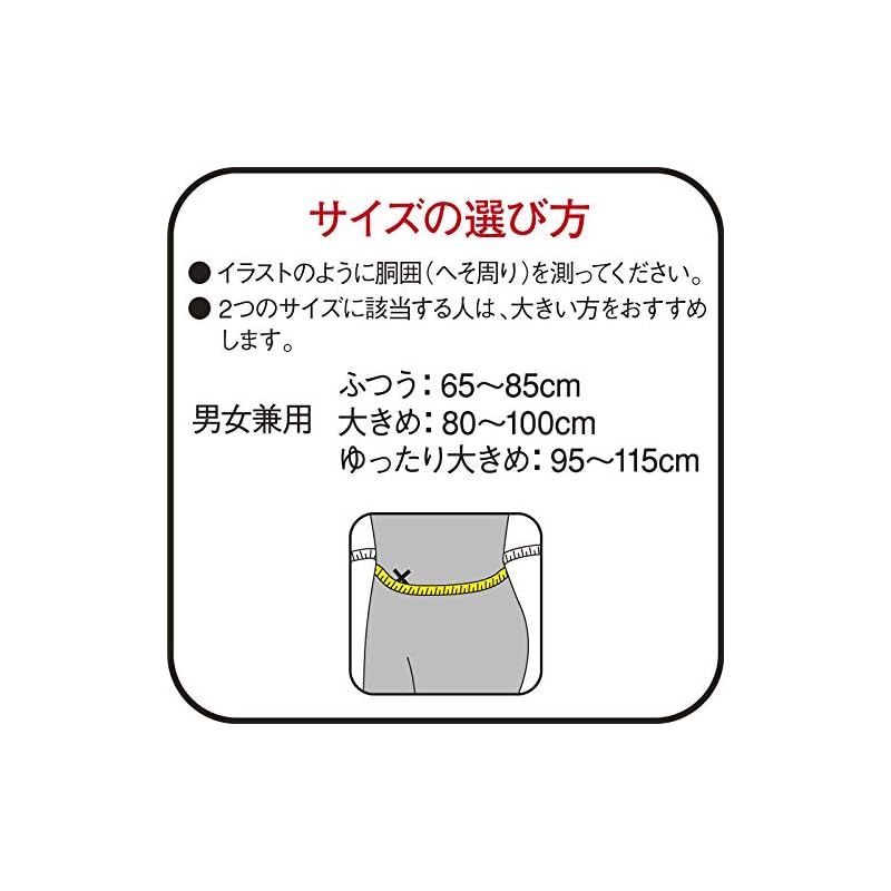 【商品概要】 原産国 : 日本 内容量 : 1枚 商品包装サイズ (幅×奥行×高さ) : 16cmx4.7cmx22.2cm ・サイズの選び方 胴囲(へそ周り)を測ってください。 ・ふつうサイズ:65cm~85cm ※2つのサイズに該当する場合は、大きい方をおすすめします。 成分: ポリエステル、ナイロン、ポリウレタン、ホリプロピレン