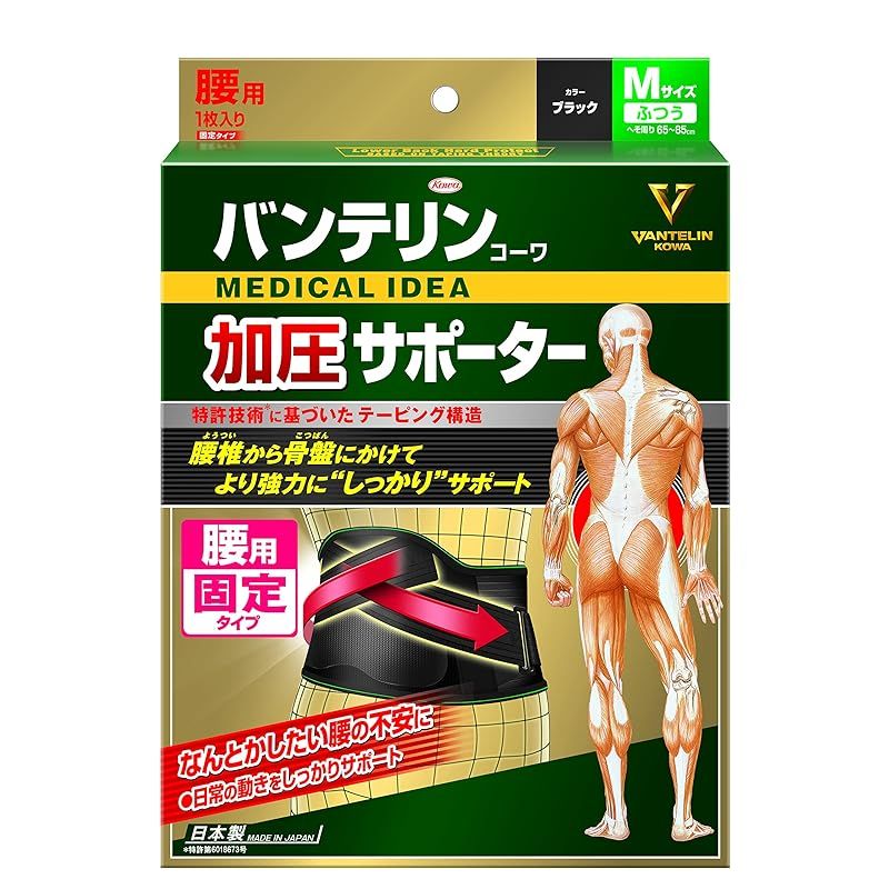 バンテリン加圧サポーター 腰用固定タイプ ふつう/Mサイズ(へそ周り 65~85cm) ブラック 0