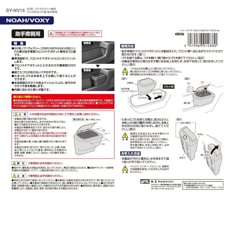 ☆彡槌屋ヤック(Tsuchiya Yac) 車種専用品 トヨタ 90系 ノア ヴォクシー 専用 サイドBOX ゴミ箱 助手席用 ブラック 3.9 gallons SY-NV15 1