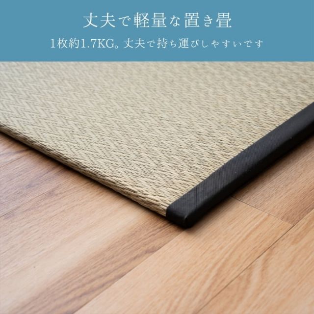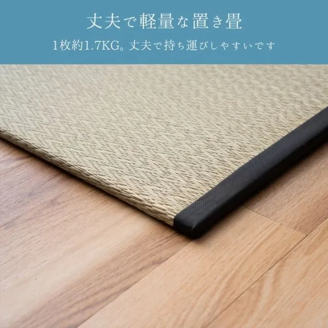 表地=い草、中材=木製ボード10mm、裏=滑り止め不織布2mm