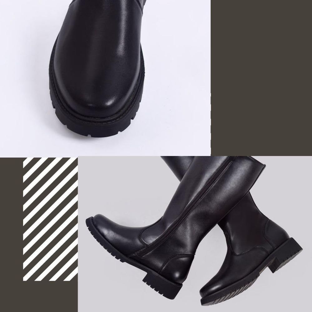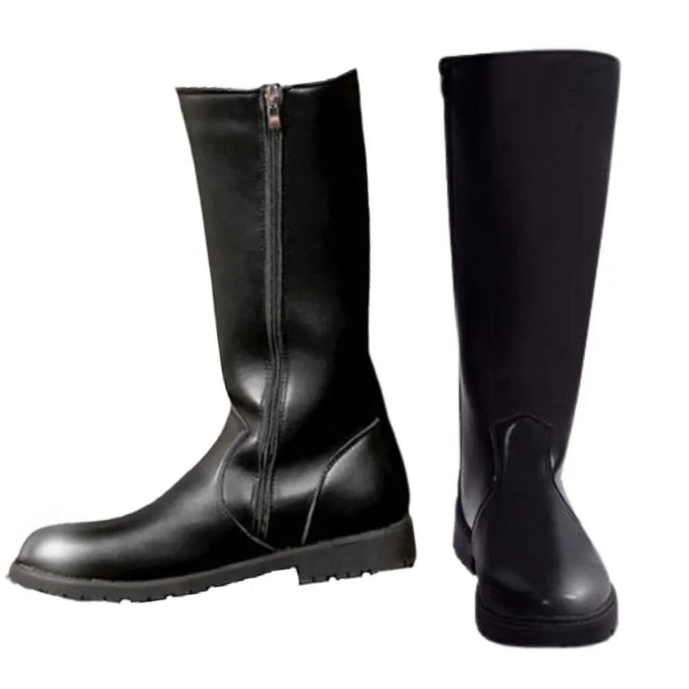 レディース メンズ 黒 ライダー ブーツ 特攻ブーツ 旧車 ロング PUレザー バイク ハイカット ジッパー [MORASTYLE] ファスナー