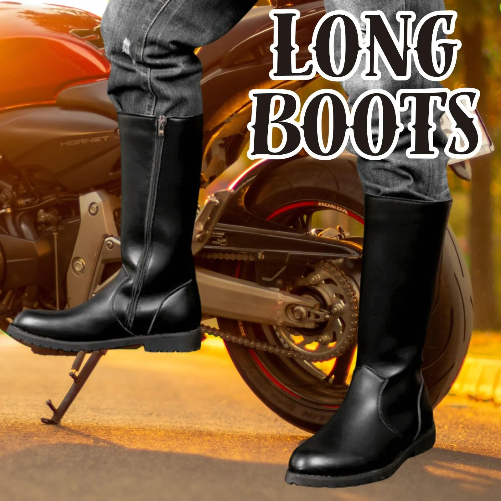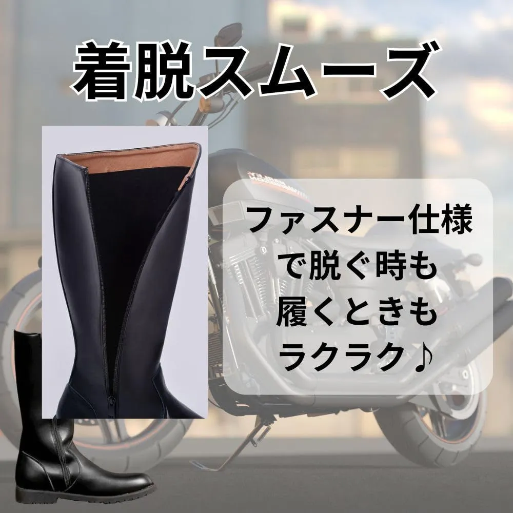 [MORASTYLE] バイク ロング ブーツ メンズ レディース 黒 ライダー 特攻ブーツ 旧車 PUレザー ハイカット ジッパー ファスナー