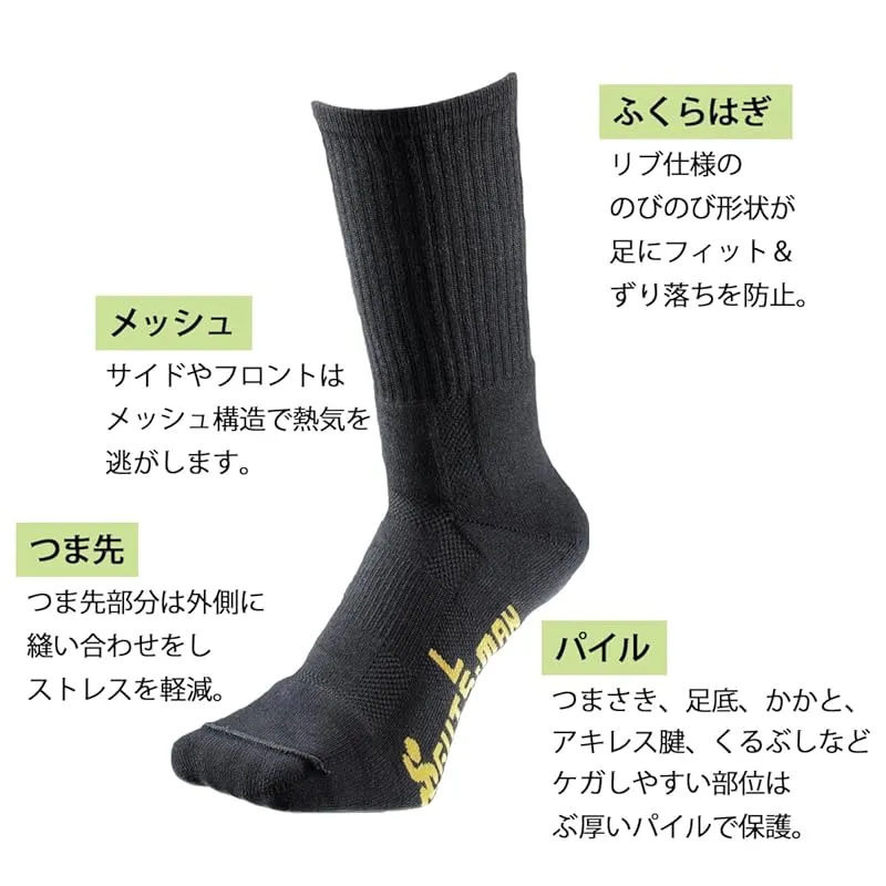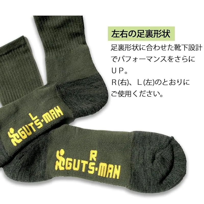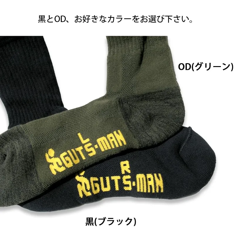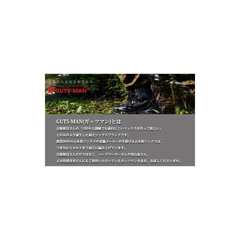 ●『GUTS-MAN』とは、自衛隊員さん向けの高機能ソックスブランドです。こちらの商品は40キロ行軍にもご使用頂ける強度として開発し、半長靴や安全靴・登山靴にもご使用頂けます。