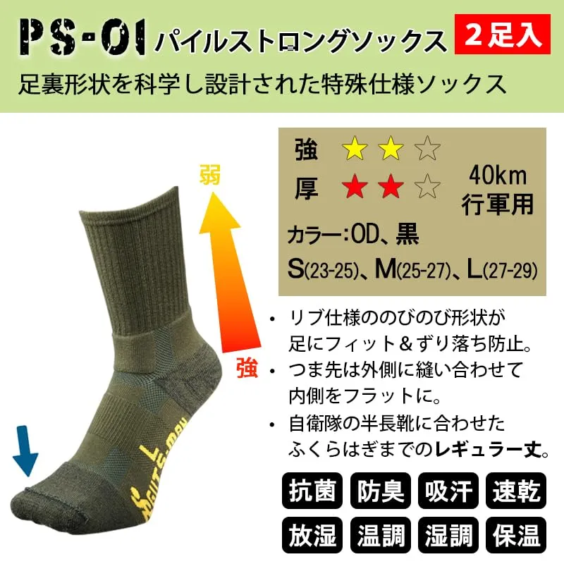 [ガッツマン] パイルストロングソックス 2足組 (PS-01) 40km行軍 演習用 パイル靴下 頑丈 登山 M 25-27cm ブラック 1