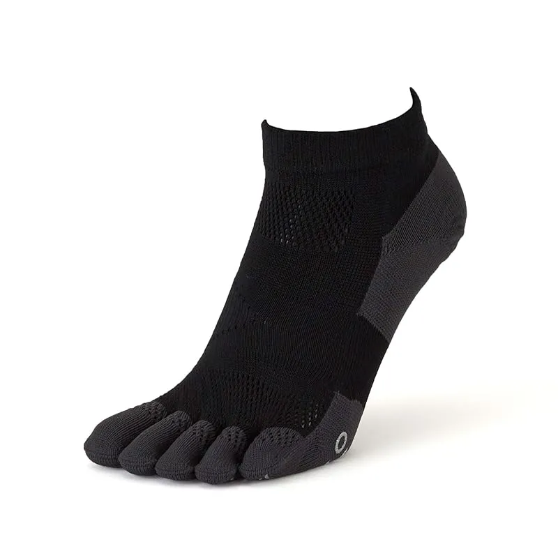 【商品概要】 レーシングラン5本指ソックス“の進化版。 これまでの商品よりも薄めの生地厚でありながら、今まで以上のサポート性能と通気性をもたせたソックスです。 シューズとの摩擦を受ける外側は耐久性に優れたナイロンを使用。 レーシングラン五本指ソックスに比べ、より生地を薄くし、軽量化して快適な走りをサポートします。 片足あたり約30%軽くなりました。
