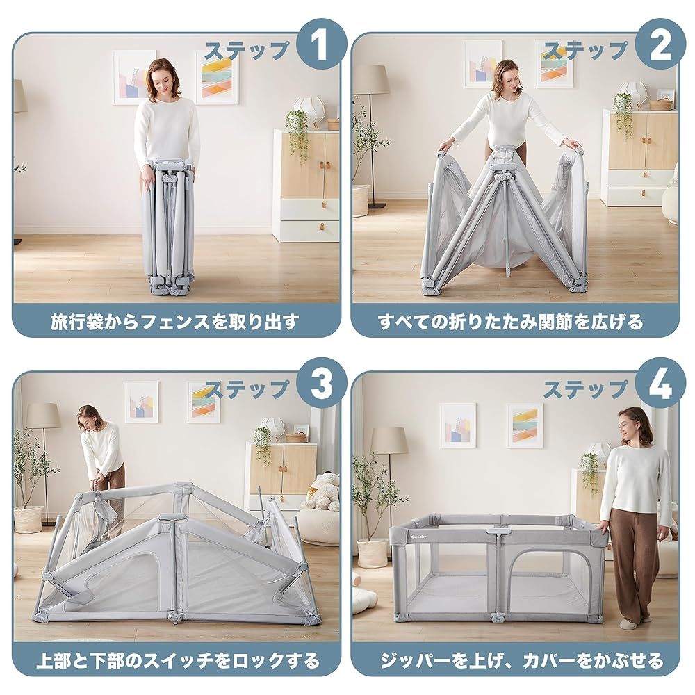 「商品状態」「商品情報 (新品の場合) 」 「主な仕様」すぐに使える: Sweeby 折りたたみ式子供用フェンスは、新設計の一体型構造により、迅速に使用および収納が可能です。最速で数十秒以内に展開できます。迅速な折りたたみ機能により、使用しない時の収納スペースを節約し。この新型ベビーサークルは、旧式のベビーサークルの組み立て、分解、収納の難しさを解消しました。