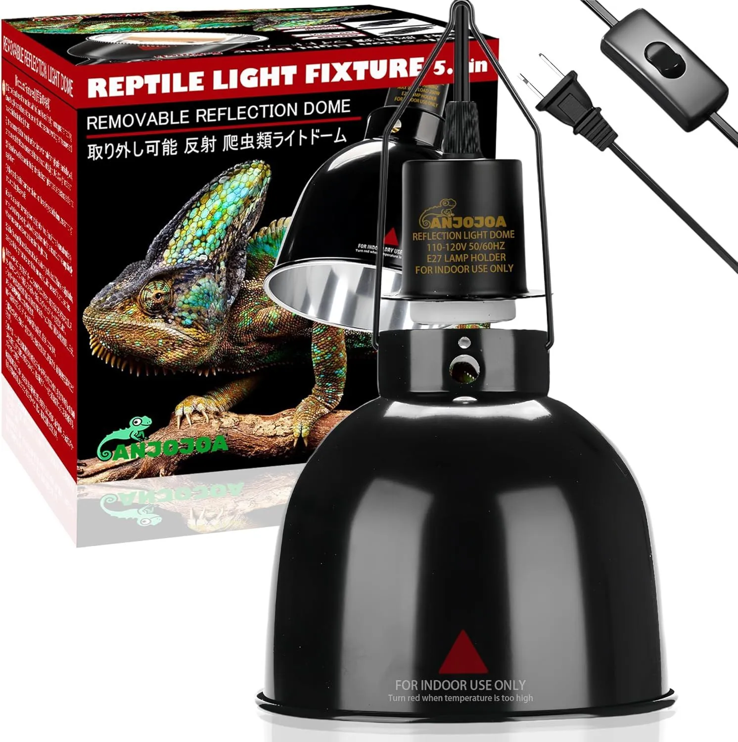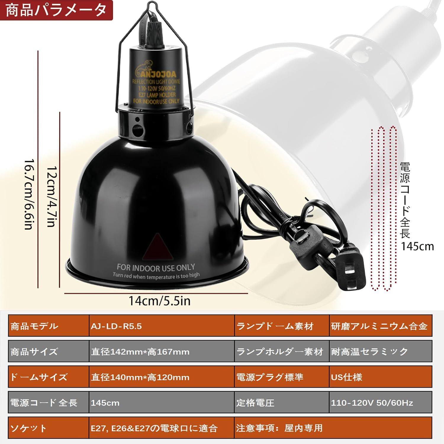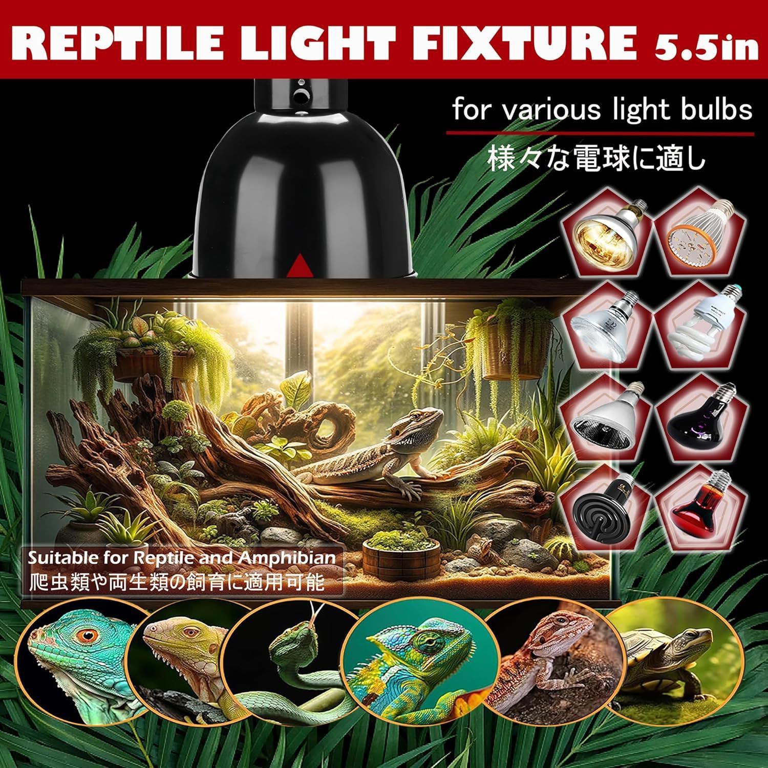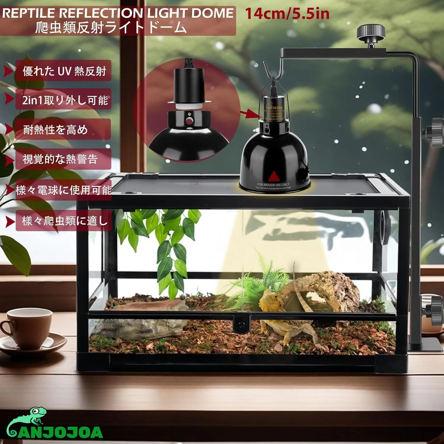 爬虫類・両生類用照明器具 ライトドーム 14cm 取り外し可能ランプヘッド 反射ドーム 集光カバー 白熱球・UV球用照明器具 UVBライト バスキングライト セラミックヒーター 赤外線ヒーター 爬虫類用電球に使用 スブラック 5.5in A278