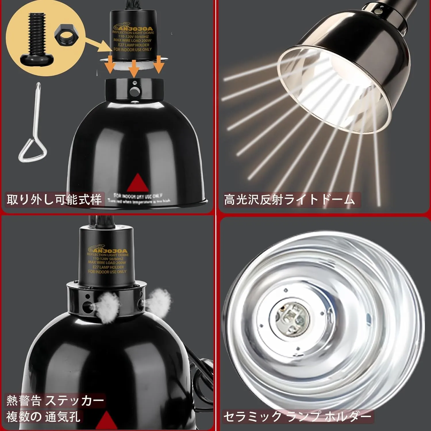 ・[幅広い用途] このシリーズの照明器具は、E26/E27の各種電球と完全に互換性があります。セラミックヒーター、UVA、UVB、UVライト、赤外線ヒーターなどにも使用できます。爬虫類、両生類、小動物(アゴヒゲトカゲ、ヤモリ、カメ、リクガメ、トカゲ、カメレオン、ヘビ、イグアナ、カエルなど)に最適です。独立したON/OFF電源スイッチを備えており、簡単に制御できます。ランプクリップと併用することで、ランプの位置と角度を自由に調整できます。フックでフロアスタンドに吊り下げることもできます。