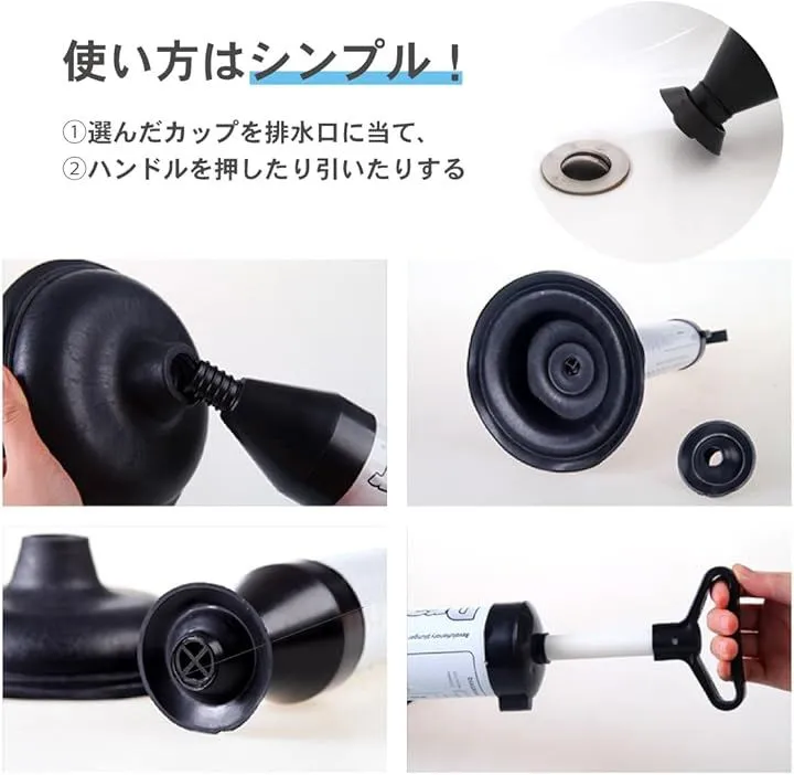 「強力な吸引力」本製品のパイプクリーナーは真空式のメカニズムを採用しており、強力な吸引力で詰まりの原因をしっかりと引き抜きます。