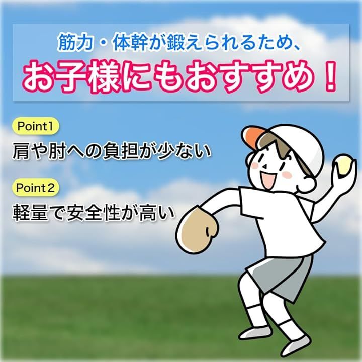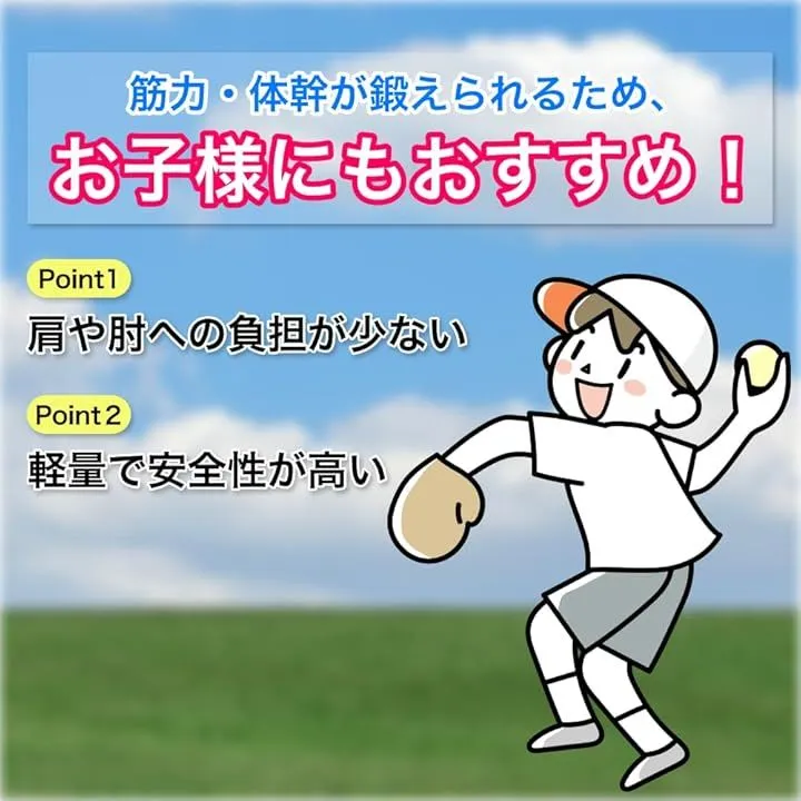 軽量なので安全性が高く、お子様が遊びながら野球やソフトボール等の正しい投げ方のフォームを自然に身に付けられます。