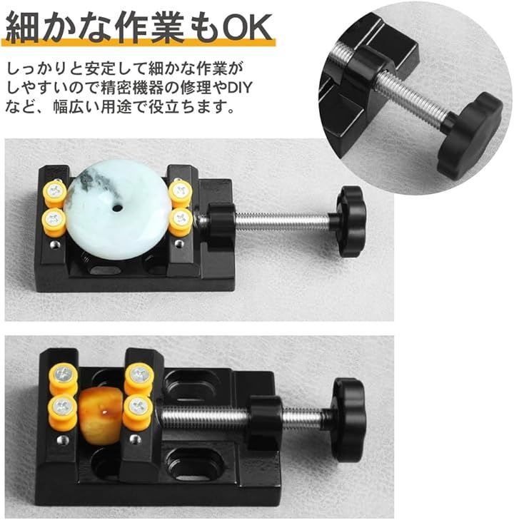 EINEY 小型 卓上 万力 ミニバイス 固定 DIY ハンドメイド 作業 アクセサリー 加工作業 取付簡単 宝石の加工 アクセサリー作り (台座黄色)
