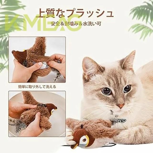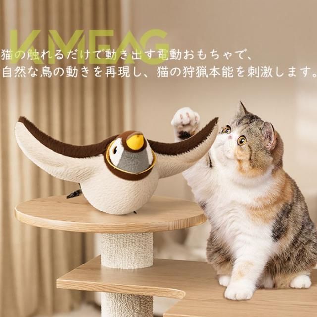 猫 おもちゃ 鳥 ピョンピョンバード 鳥 電動飛ぶ 猫じゃらし リアルな鳥鳴き声 羽ばたき鳥 電動おもちゃ ぬいぐるみ玩具 猫用おもちゃ ふわふわ ネコ ねこ 運動不足 ストレス解消 発散 ペット用品 一人遊び USB充電