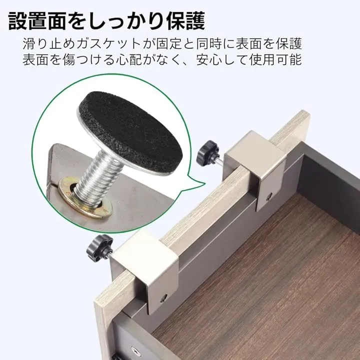 滑り止めガスケットが付属しており、設置面への均一な力の分配と傷防止効果を実現。