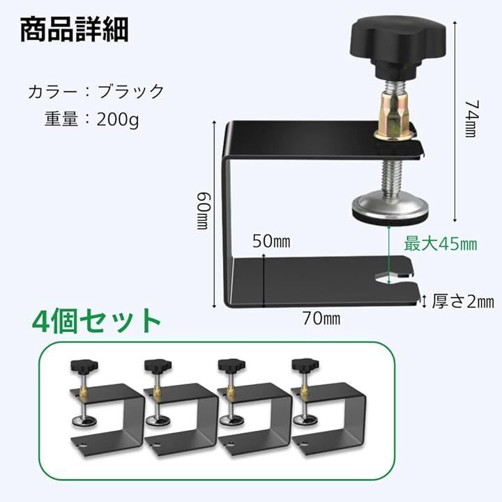 「商品詳細」セット内容:クランプ4個 サイズ:7cmx6cmx5cm 重量:200g カラー:ブラック