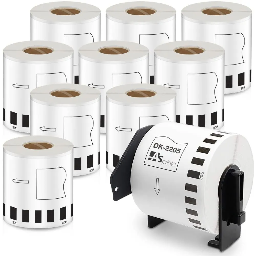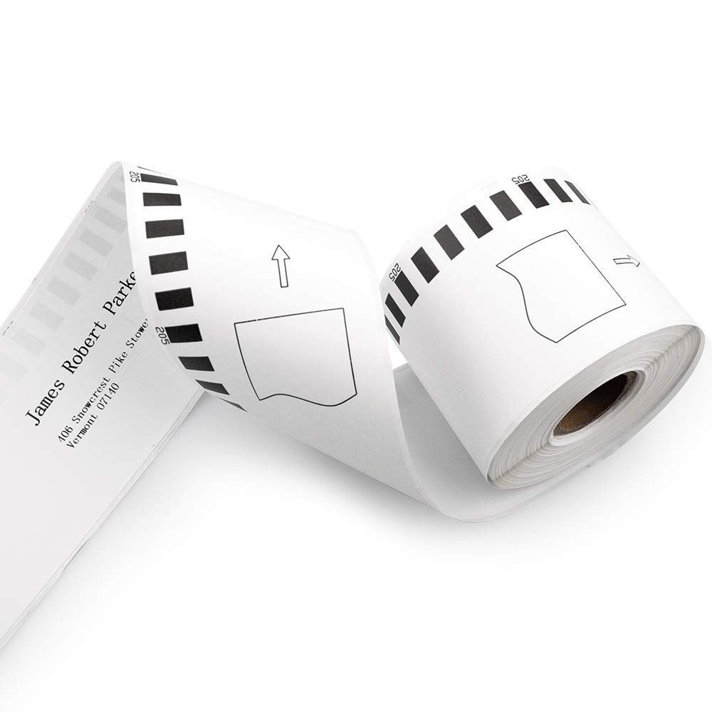 長尺紙テープ(大) 62mmx30.48m DK-2205 DK 2205 感熱ステッカー紙 プレカットなし ラベルプリンター QL-800 QL-820NWB QL-700 QL-550 QL-720NW QL-650TD 10ロールセット、ブラザーBrotherと互換性のある DKラベル 合計304.8メートル