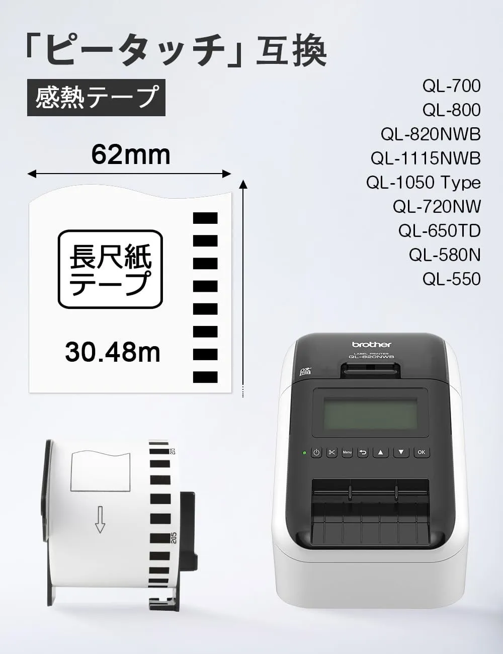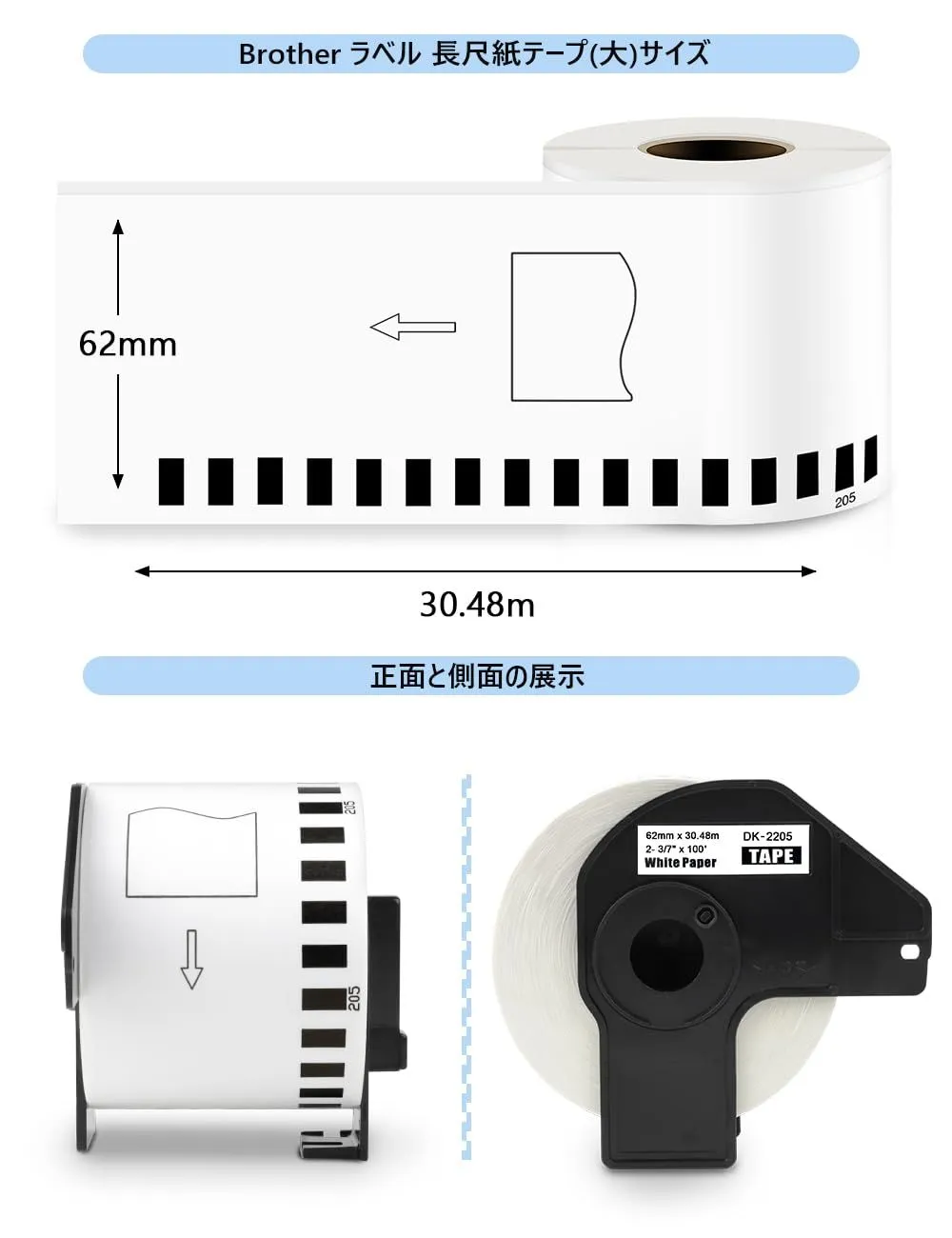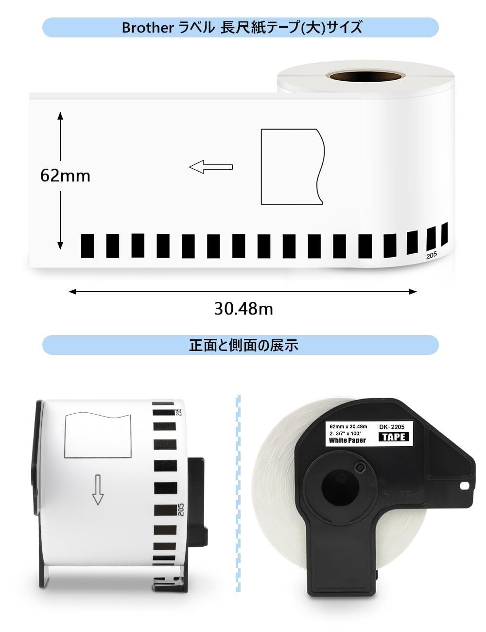 [ 含みます ]: 感熱紙ラベル 10ロール、専用ホルダー 1個。[ 互換型番 ]: 互換ブラザー工業 長尺紙テープ(大) DK-2205。