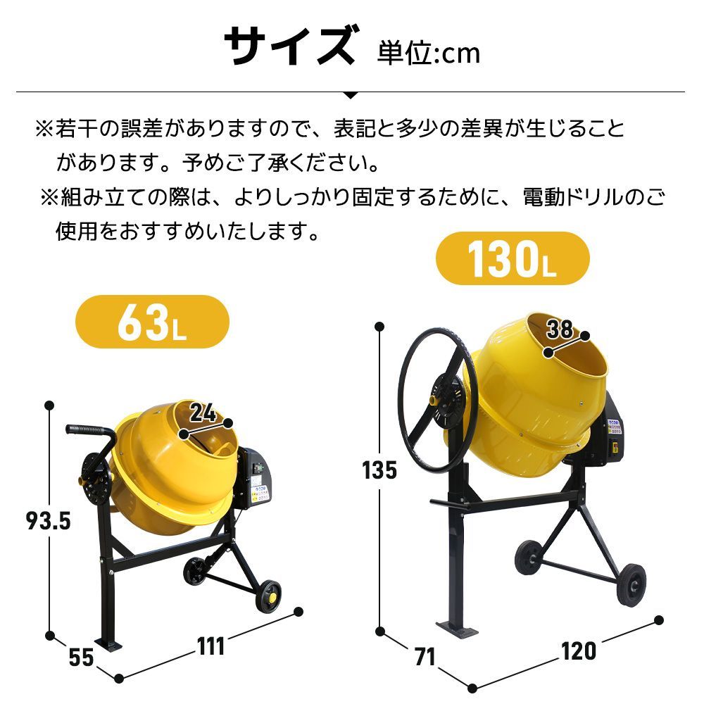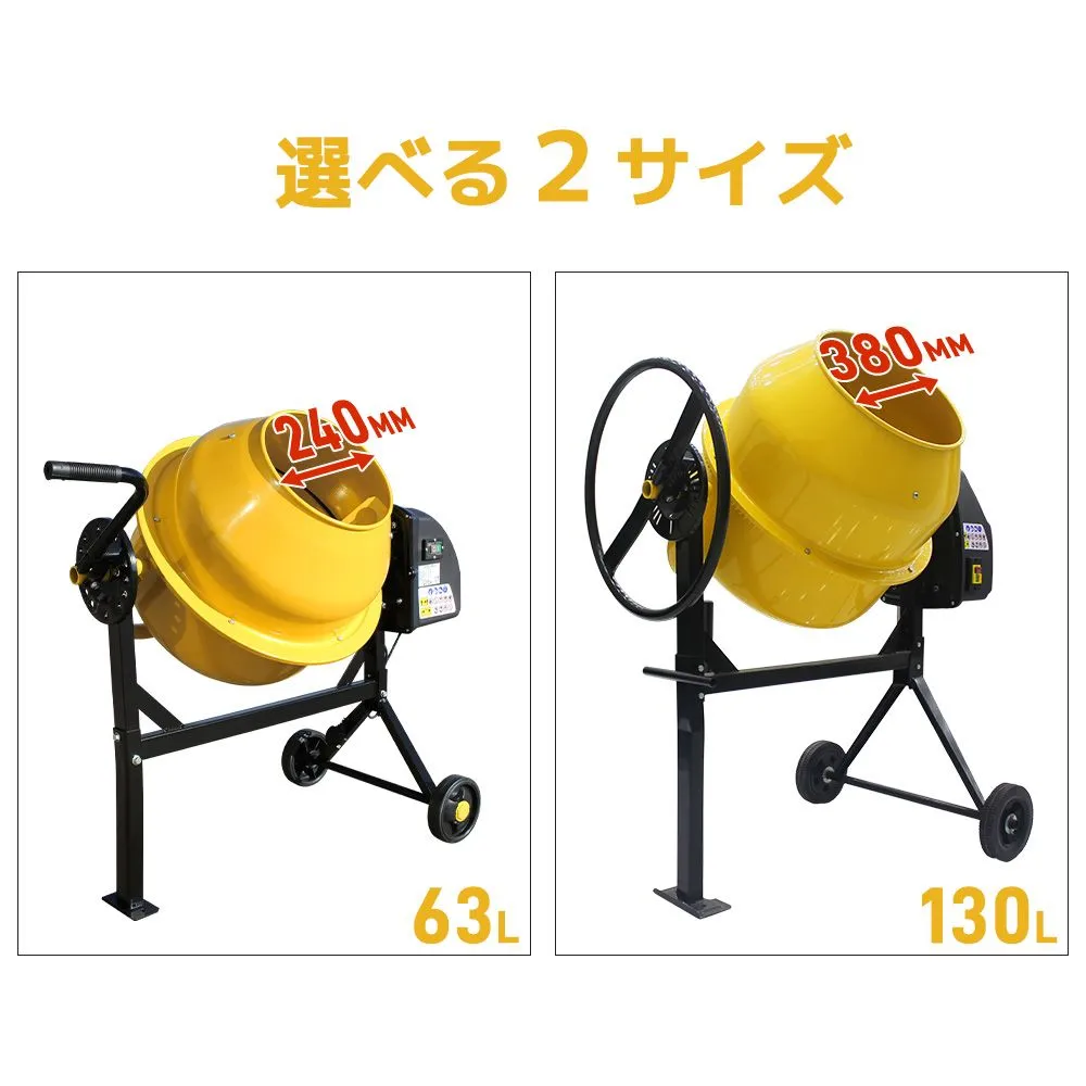 【130L】電動コンクリートミキサー 混合練り上げ機 混合練り上げ器 攪拌機 工事用 コンクリートミキサー ミキサー