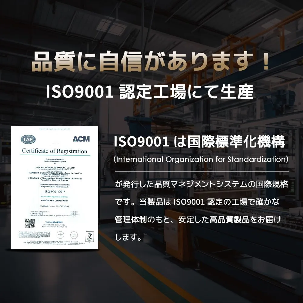 【品質に自信があります!】ISO9001 認定工場にて生産ISO9001 は国際標準化機構(International Organization for Standardization)が発行した品質マネジメントシステムの国際規格です。当製品は ISO9001 認定の工場で確かな管理体制のもと、安定した高品質製品をお届けします。