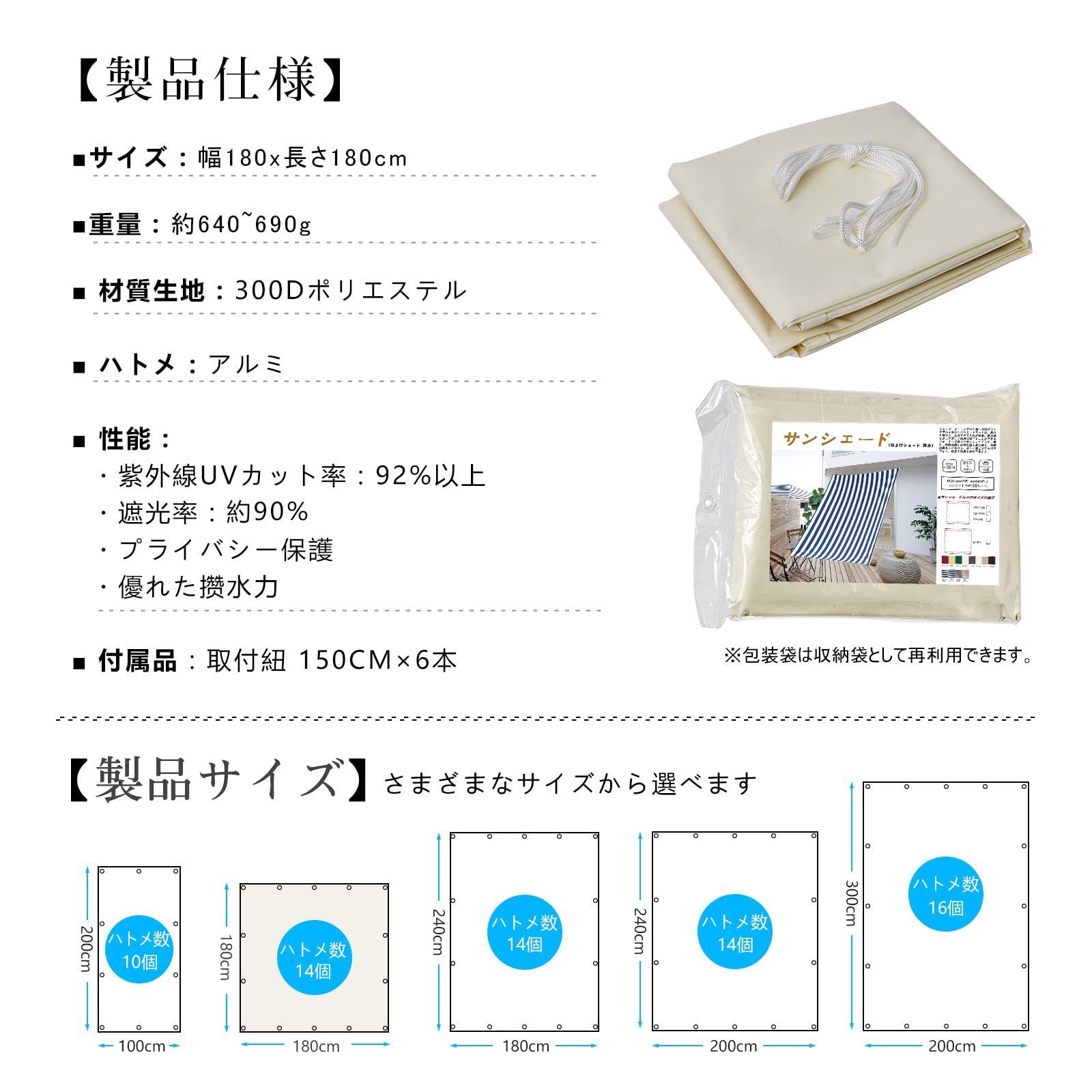 アイボリー 撥水 オーニング シェード (180×180cm)日除け Time(クールタイム) Cool
