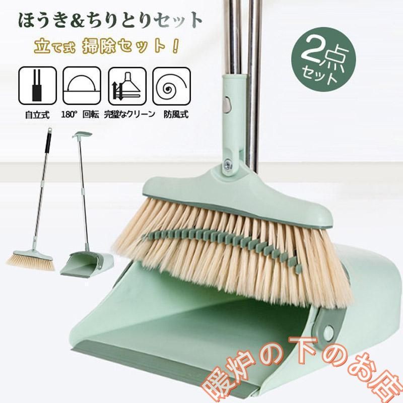 ほうきちりとり セット 屋外 2点セット ホウキ 掃除セット 防風式 コンパクト清掃用品 箒 おしゃれ ホウキ 玄関 屋外 室内 自立 ベランダ 掃除051525