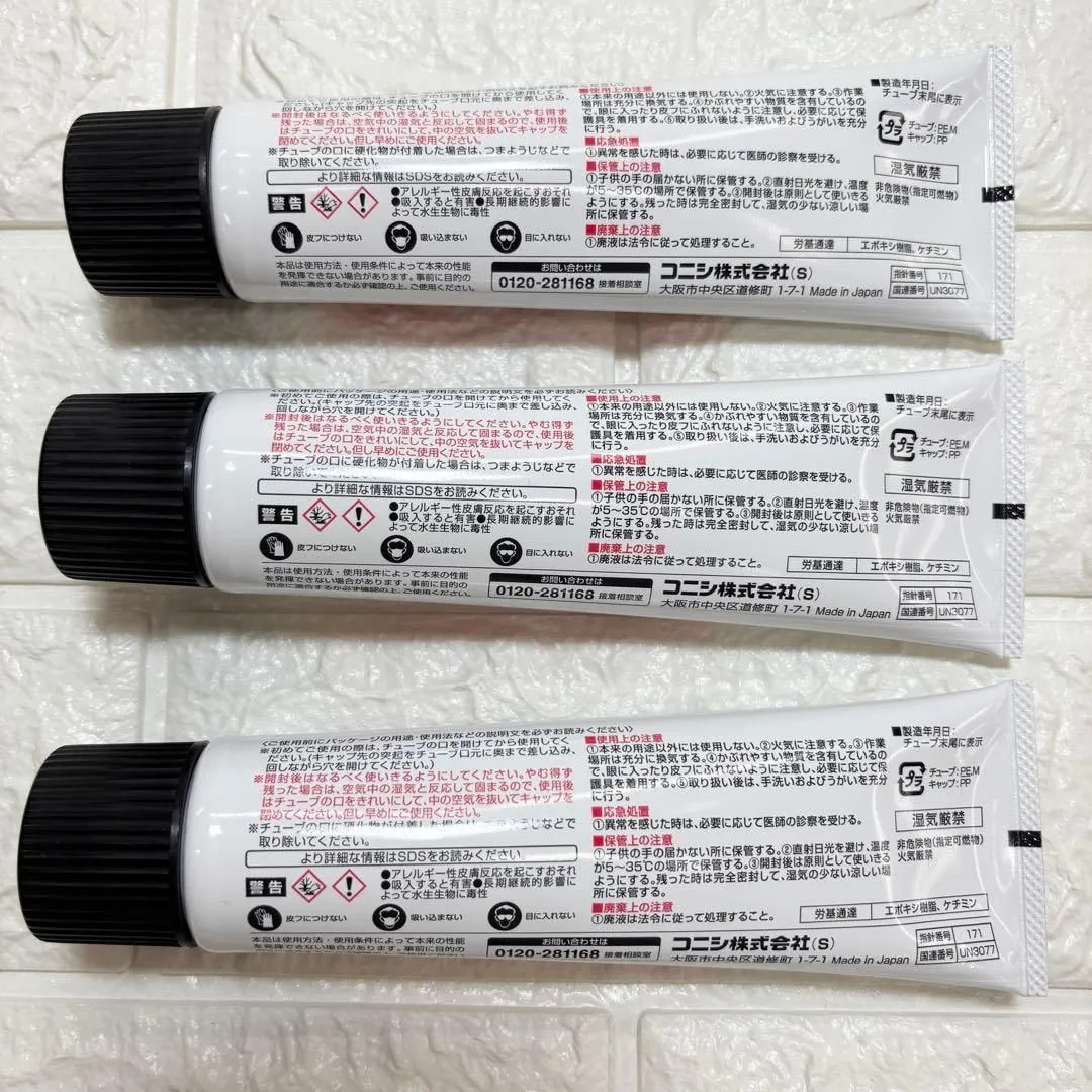 【特長】 ・厚生労働省指針値策定(2002年1月22日現在)の13物質を使用していない。 ・日本接着剤工業会4VOC自主管理制度策定(4物質、2008年2月1日現在)の基準値に適合している。 ・混合不要の1液常温硬化型で作業性に優れます。 ・弾力性に富み、衝撃吸収性、材料収縮時の追従性があります。 ・各種被着材(石材、大型タイル、セラミックス、コンクリート、モルタル、金属など)の接着に適します。 ・石材や各種塗装材(アルキッド樹脂系を除く)への汚染がほとんどありません。 NET(個装):125ml 種類:化学反応形接着剤 成分:変性シリコーン樹脂(30%) エポキシ樹脂(10%) 色調:ライトグレー 入数:3本 管理番号…KMT0331