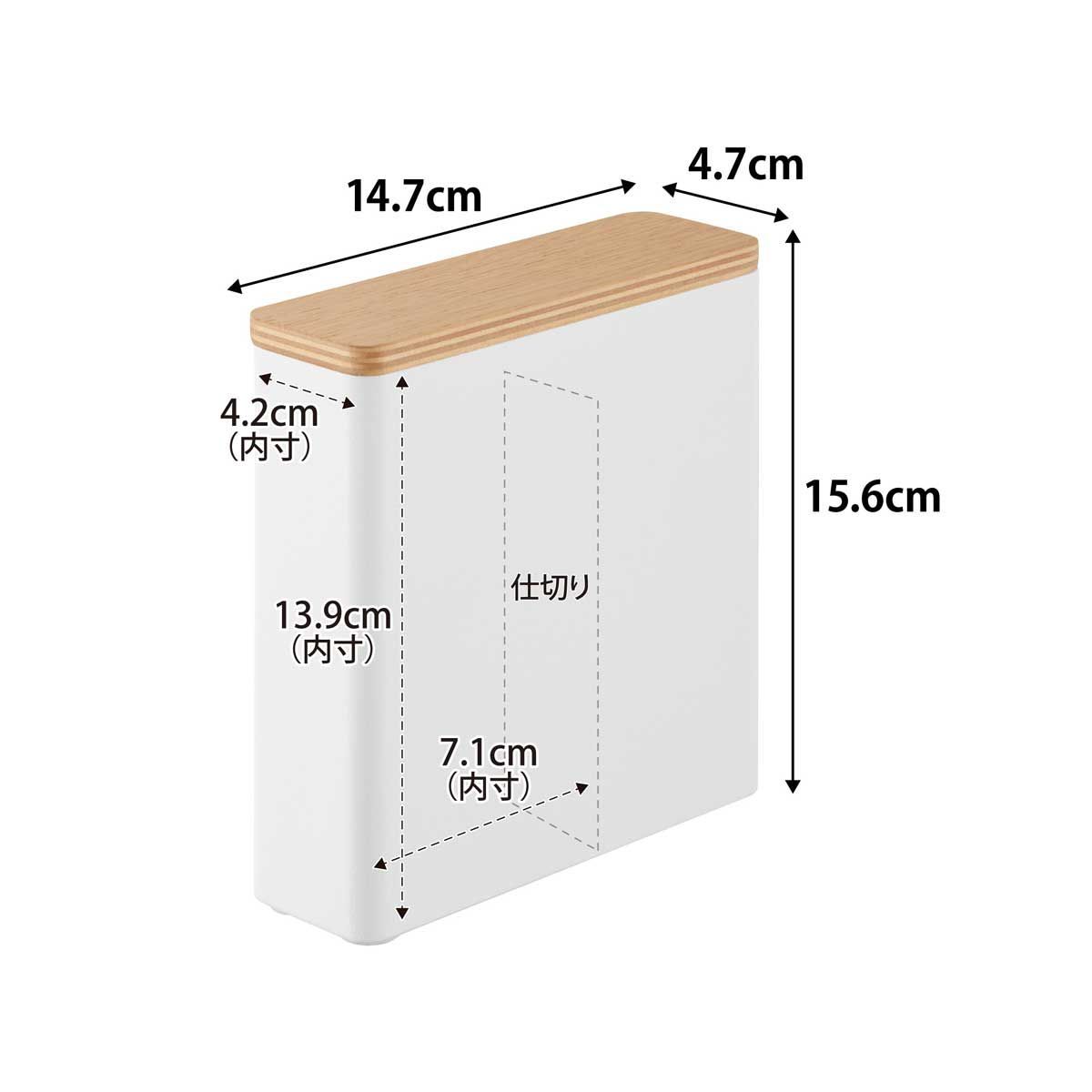 ●商品の情報 ・ブランド:YAMAZAKI(山崎実業)/日本 ・ジャンル:サニタリー収納 ・主な素材:スチール 粉体塗装(本体)/シリコーンゴム(クッション)/天然木積層合板 ウレタン樹脂塗装(蓋) ・生産国:中国 ・サイズ:約W147xD47xH156mm ・内寸サイズ:約W71xD42xH139mm(収納部1か所あたり) ・重量:約586g