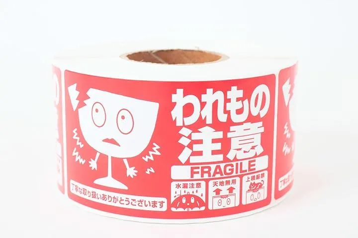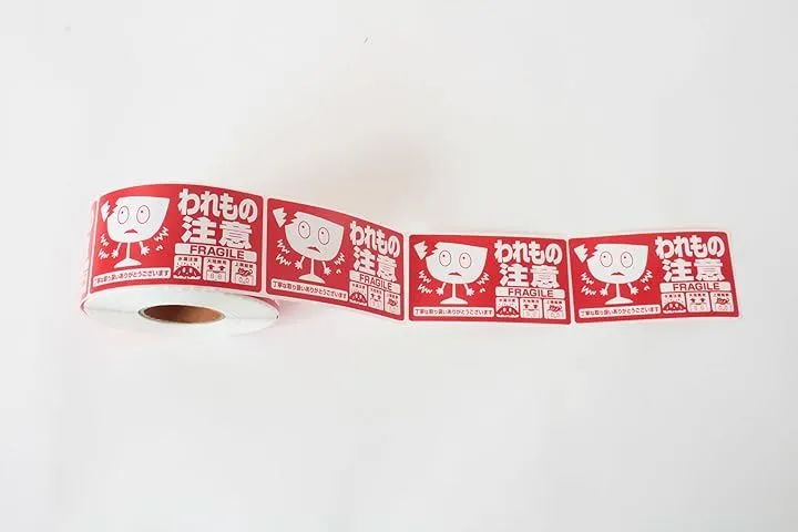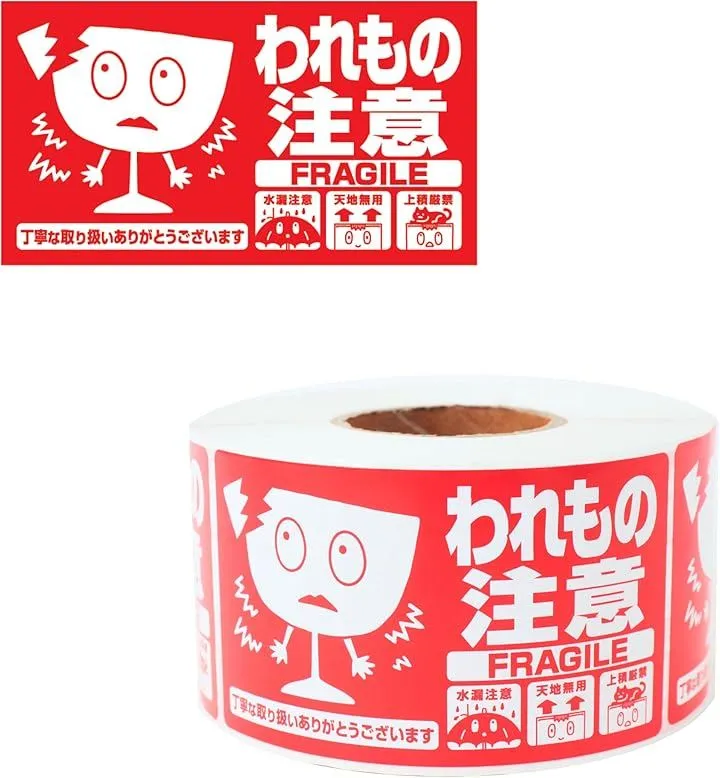 Comledge 割れ物シール われもの注意 Fragile Sticker 水濡注意 天地無用 上積厳禁 500枚/ロール ABP004 (1個, 9 x 5 cm)