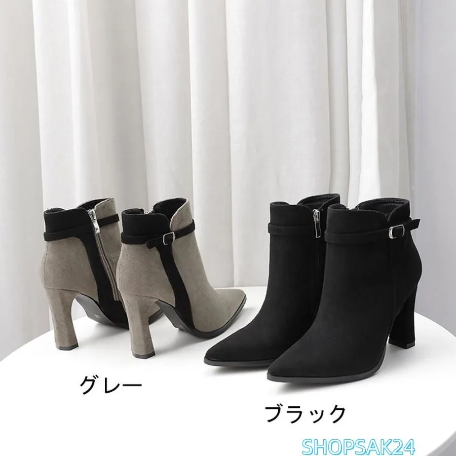 ショートブーツ レディース 秋冬 シンプル チャンキーヒール 歩きやすい 通勤 通学