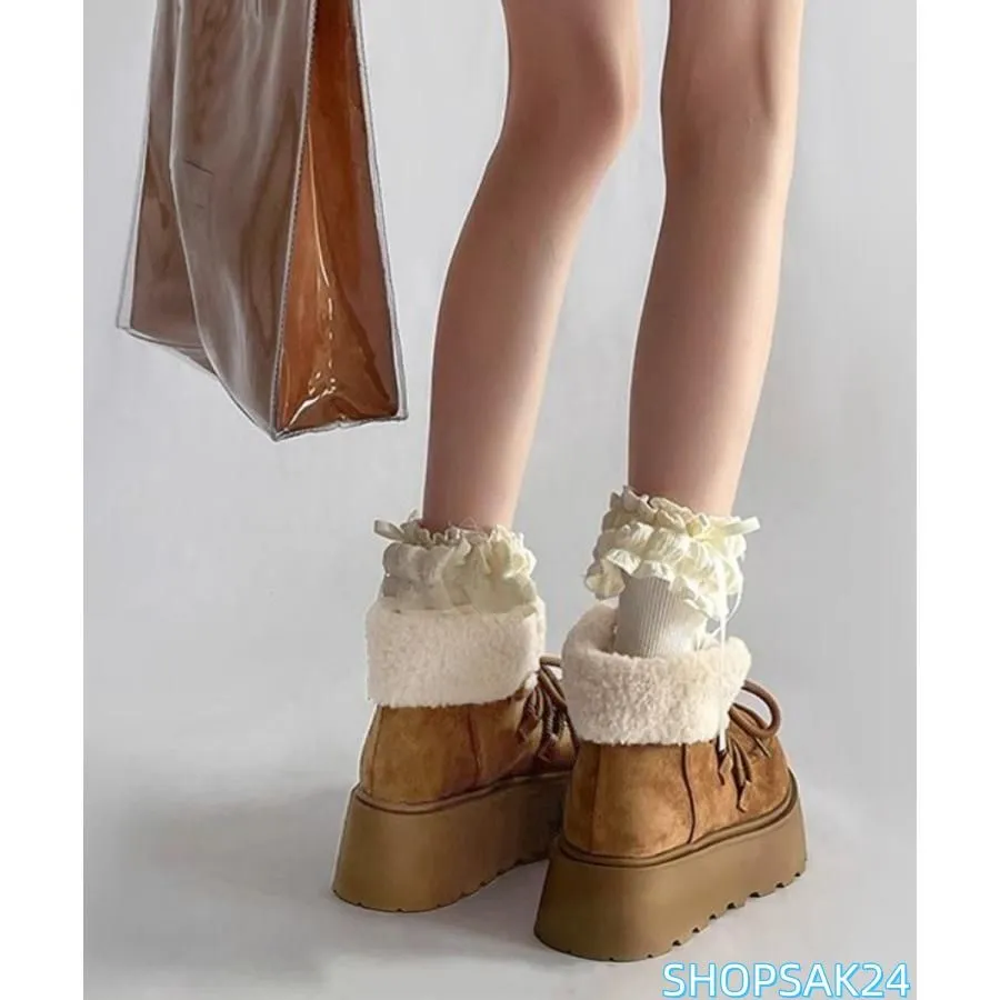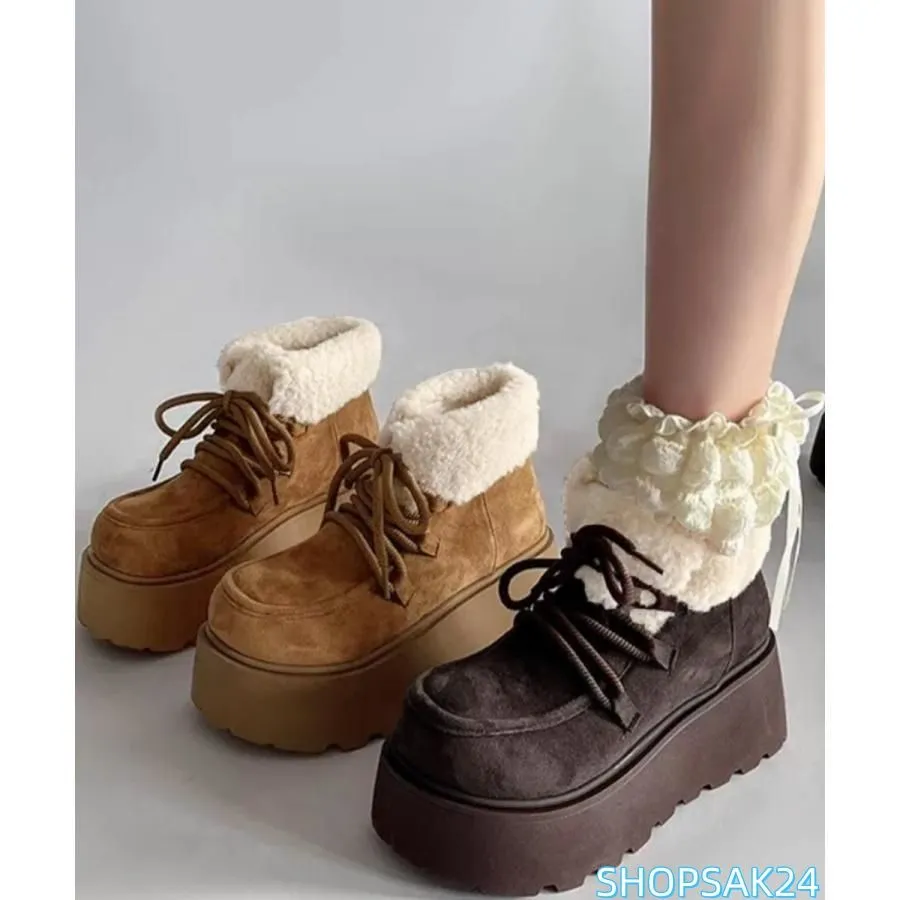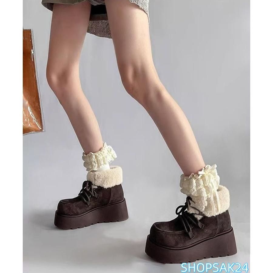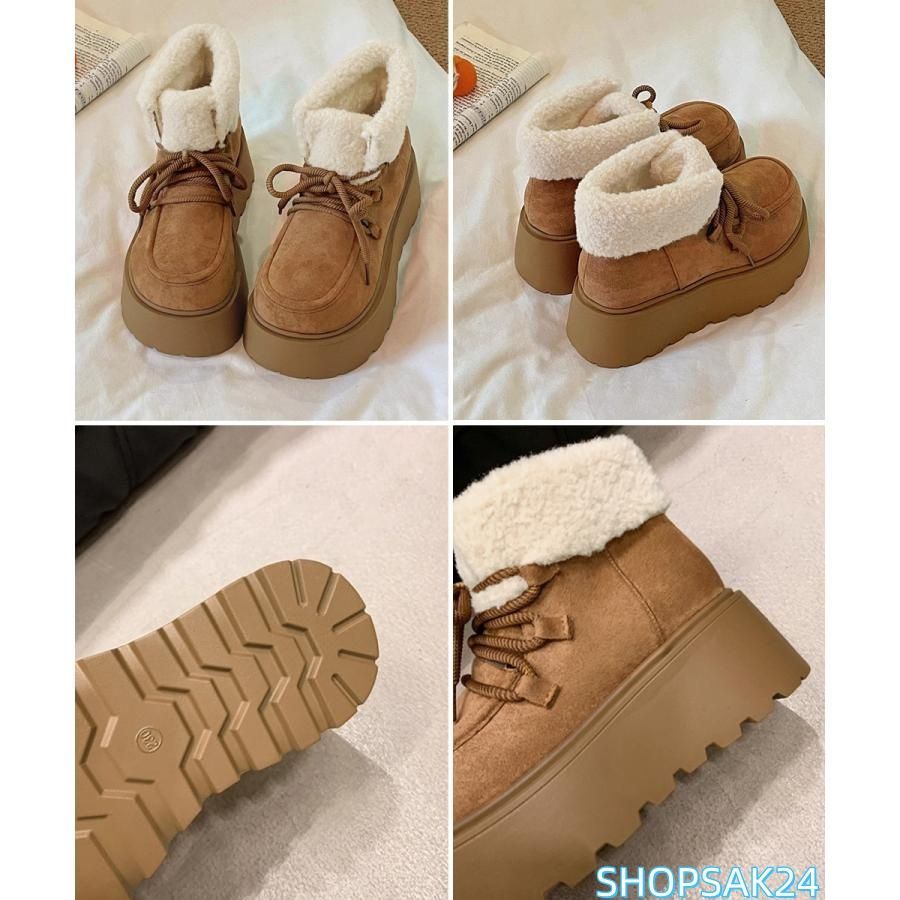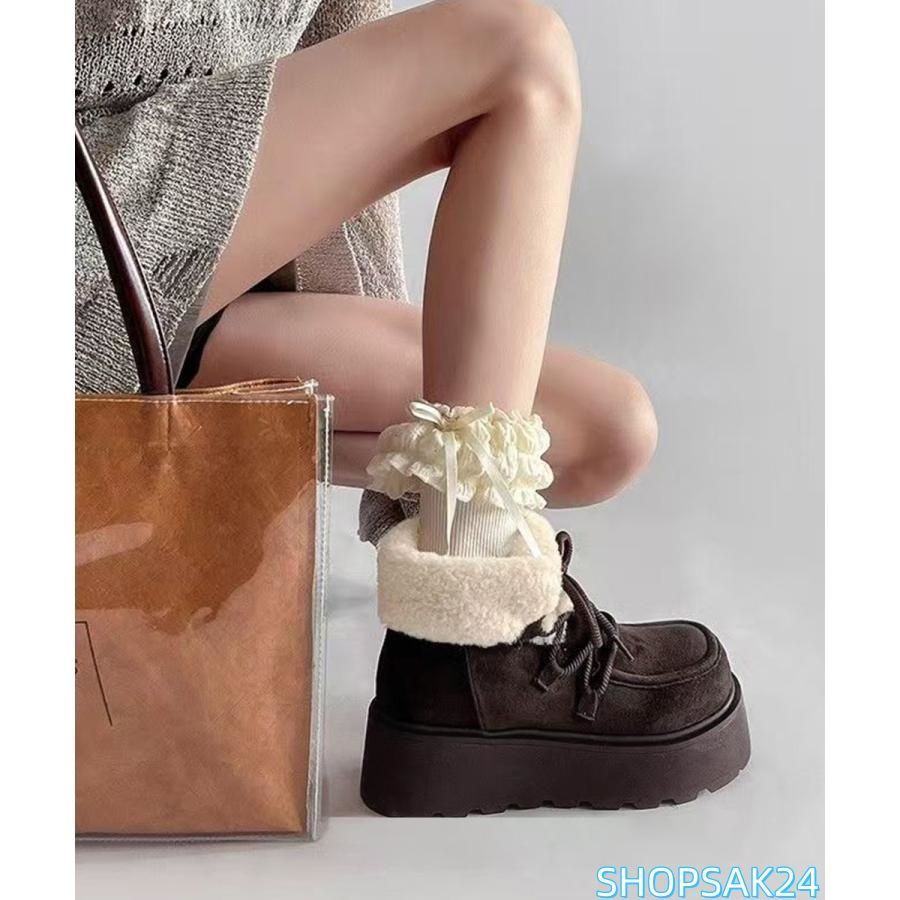 レディース レースアップブーツ 防寒シューズ 履きやすい裏起毛ブーティ 歩きやすい あったかシューズ 大人可愛い軽量冬靴