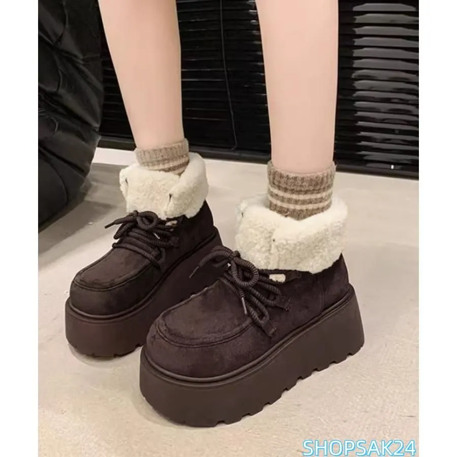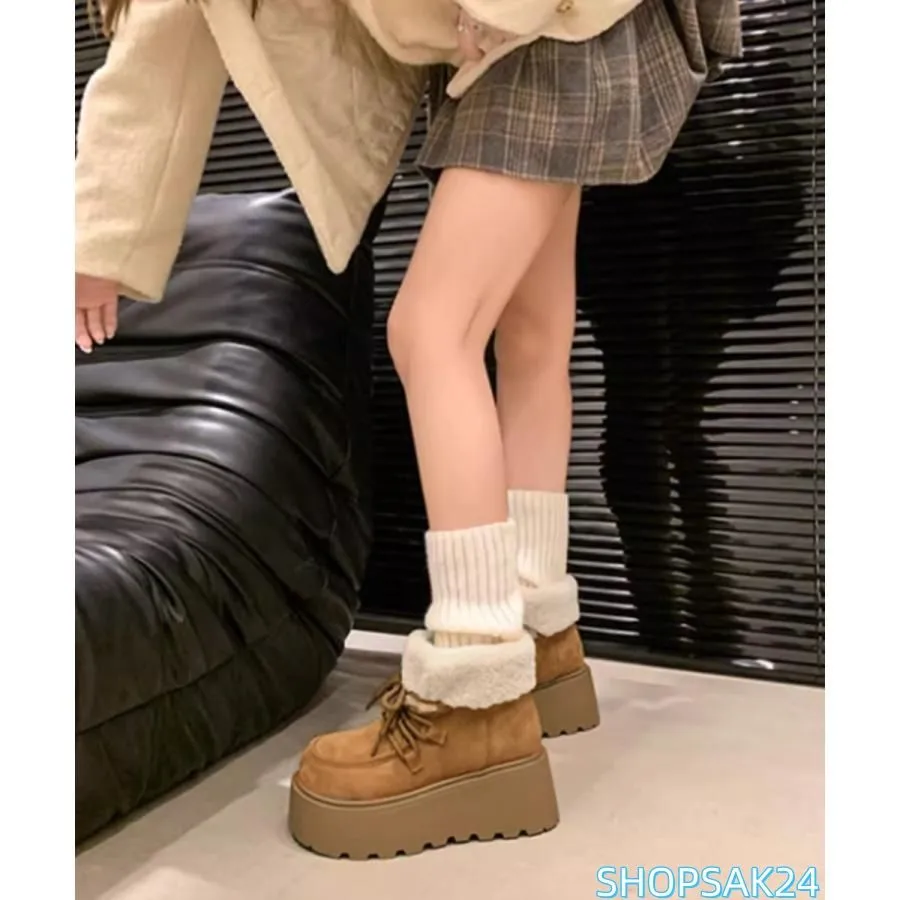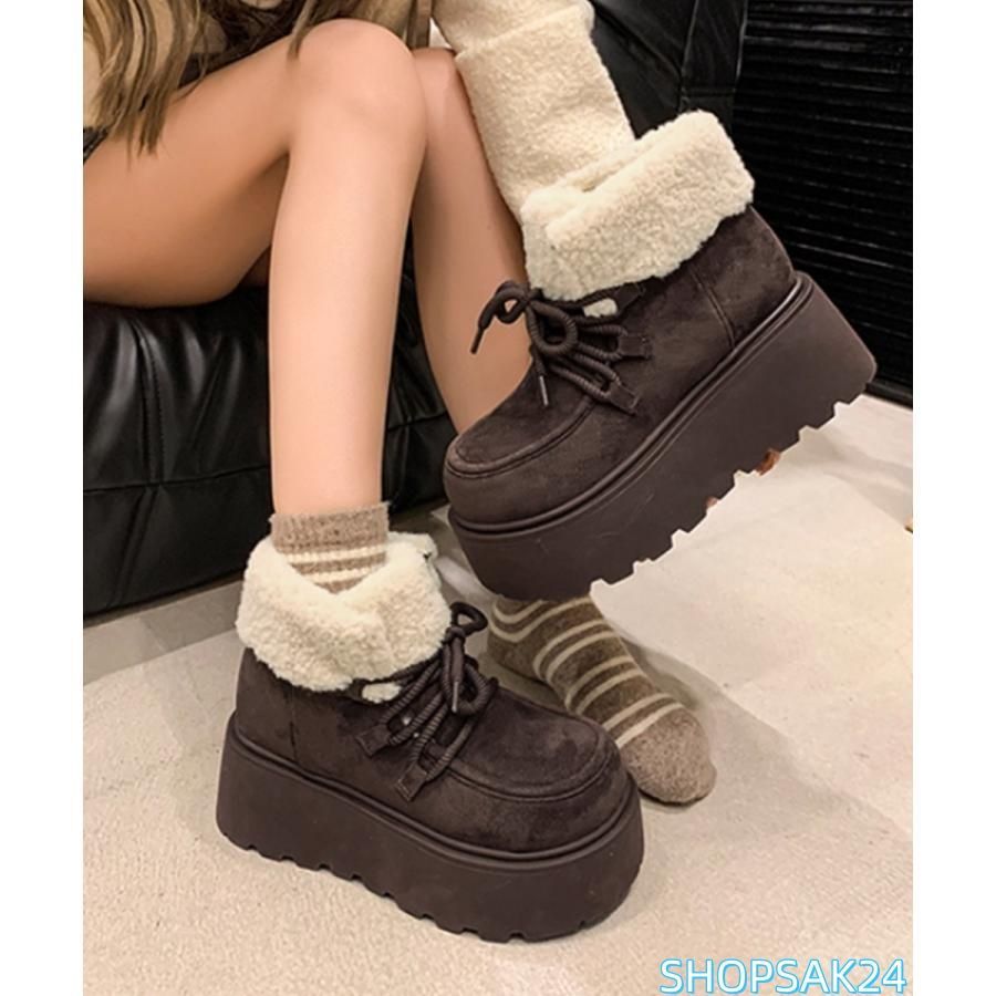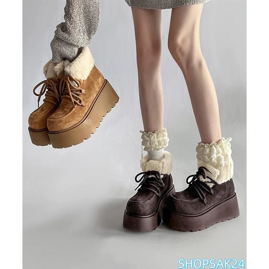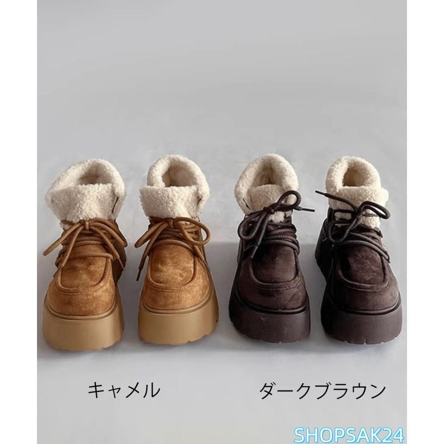 厚底 ムートンブーツ もこもこ ショートブーツ レディース 裏ボア 防寒 美脚 冬靴