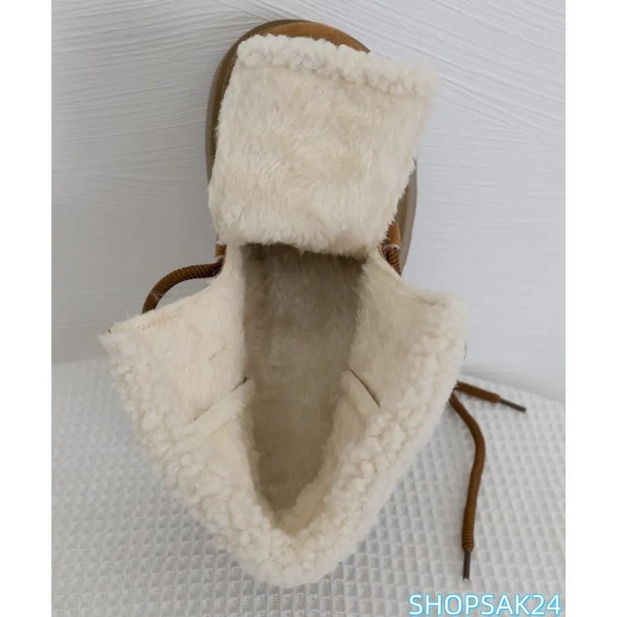 ふわふわのボアがアクセントになった厚底レースアップムートンブーツ。