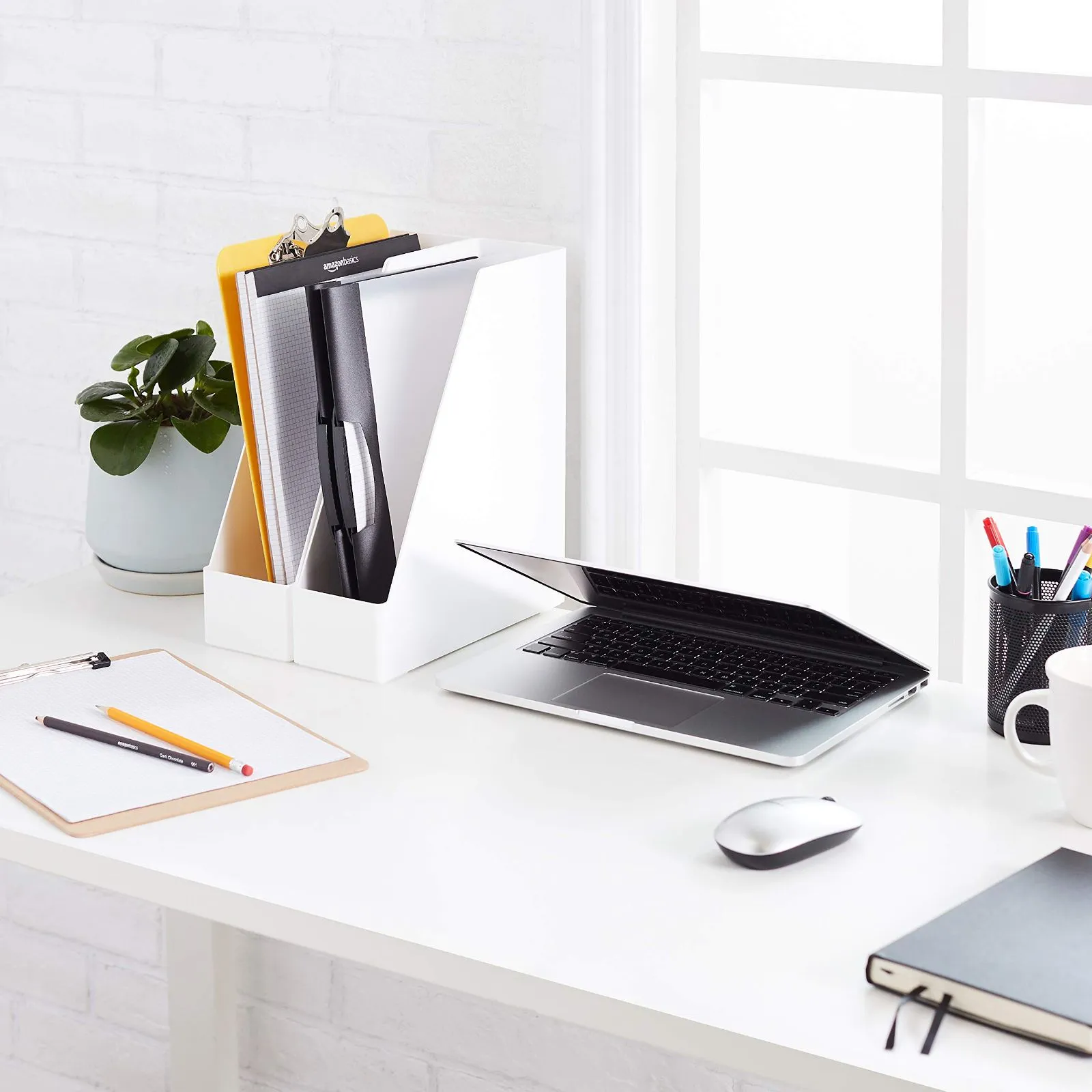 ベーシック プラスチック収納ケース ホワイト 長方形マガジンラック、2 パック