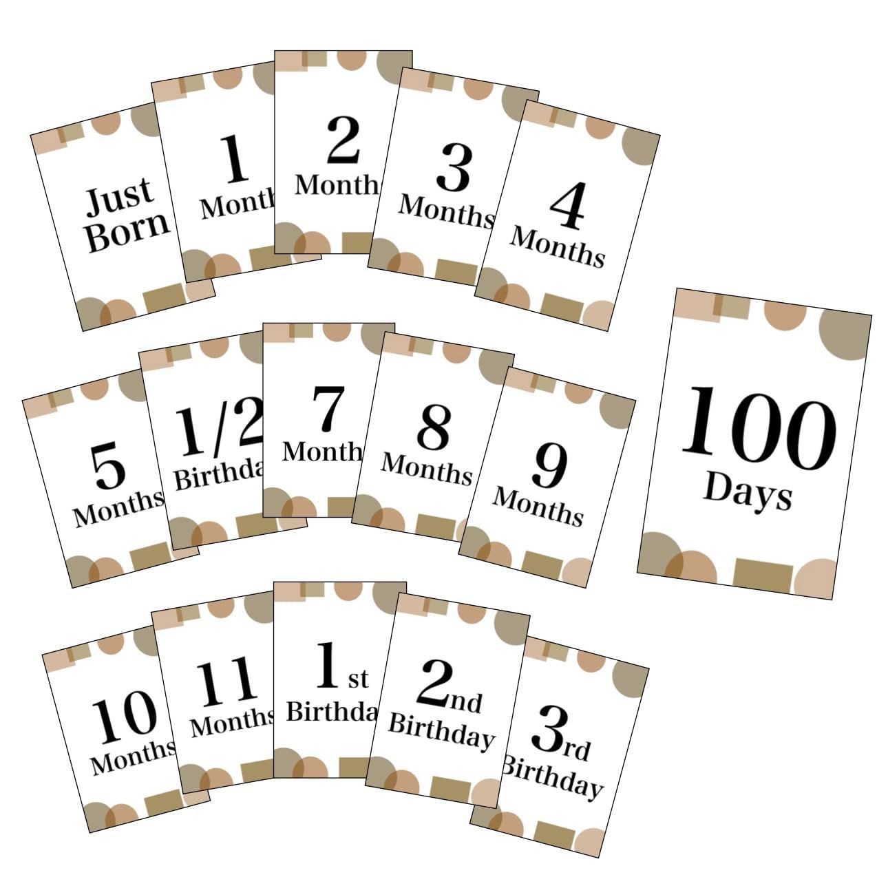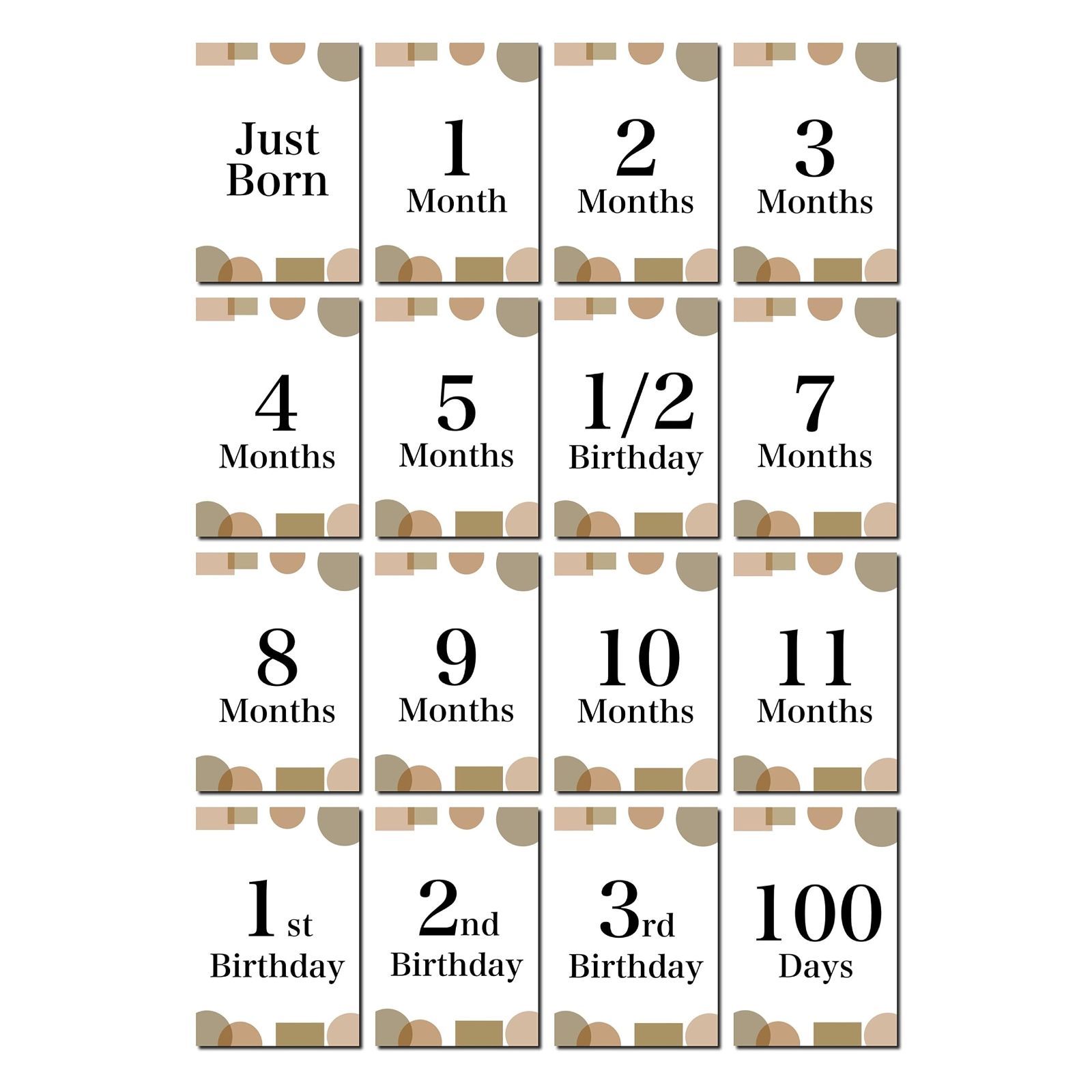 ベビーマンスリーフォトカード (月齢フォトカード) シンプル はがきサイズ / 16枚セット 01歳まで お食い初め、ハーフバースデー対応 (四角 - 1/2 Birthday ブラウン)